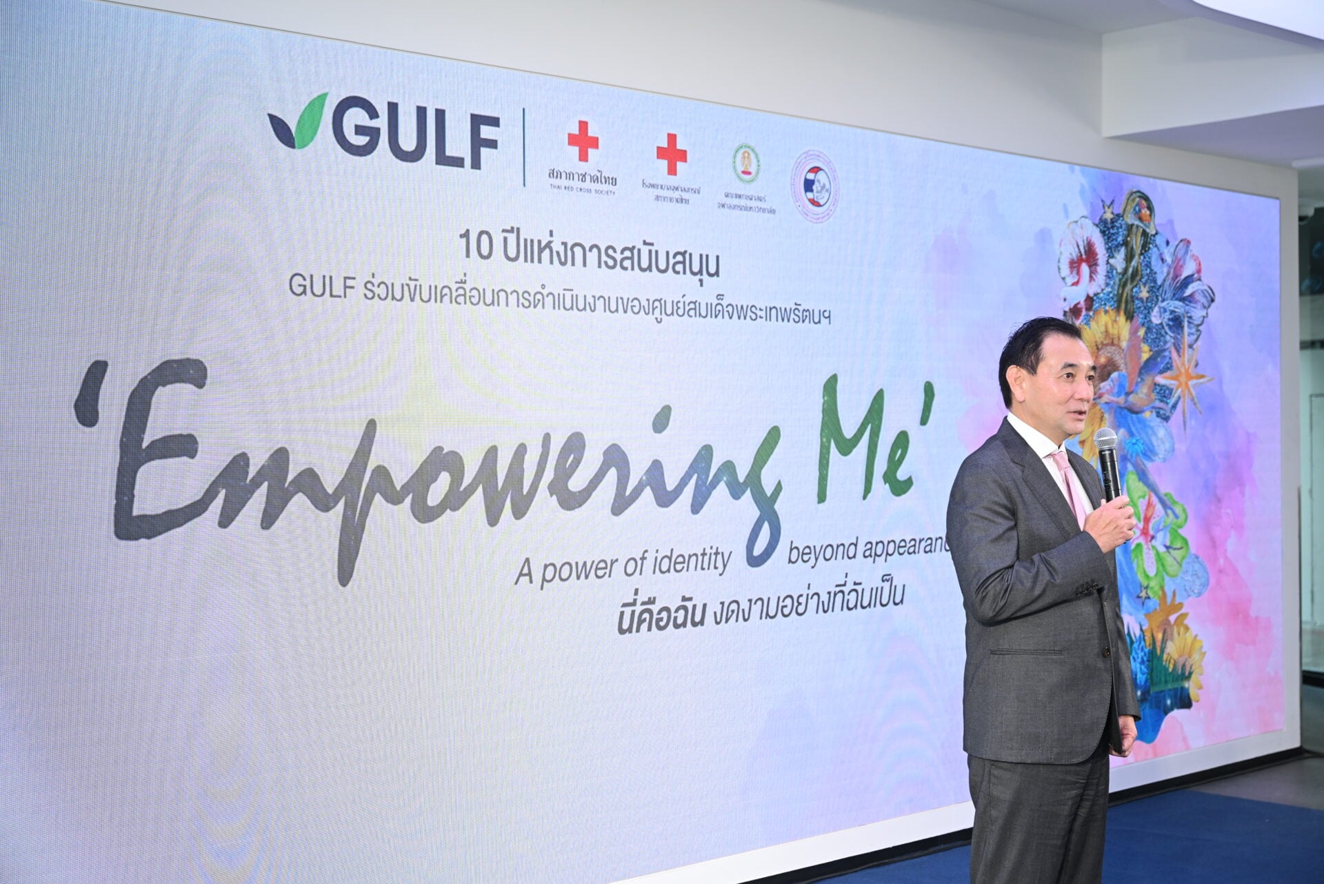 ขณะที่ ศ.นพ.นนท์ โรจน์วชิรนนท์ รองหัวหน้าศูนย์สมเด็จพระเทพรัตนฯ โรงพยาบาลจุฬาลงกรณ์ สภากาชาดไทย กล่าวว่า ศูนย์สมเด็จพระเทพรัตนฯ เป็นศูนย์กลางในการดูแลรักษาผู้ป่วยที่มีความผิดปกติบนใบหน้าและกะโหลกศีรษะ ทั้งในด้านร่างกาย จิตใจและสังคม โดยมีแพทย์และบุคลากรผู้เชี่ยวชาญ 12 สาขาที่ทำงานร่วมกันเพื่อให้เกิดผลดีที่สุดสำหรับผู้ป่วยแต่ละราย พร้อมทั้งสนับสนุนทุนการศึกษาให้กับผู้ป่วยในศูนย์ฯ ให้เข้าถึงการศึกษาขั้นพื้นฐานได้อีกด้วย ตลอด 10 ปีที่ผ่านมา GULF มีส่วนสำคัญอย่างยิ่งในการช่วยผ่าตัดแก้ไขความผิดปกติบนใบหน้าและกะโหลกศีรษะ รวมถึงการรักษาทางทันตกรรม นอกจากนี้ ผู้ป่วยที่ได้รับการผ่าตัดรักษาแล้ว แต่ยังอาจทิ้งร่องรอยของโรคไว้ในรูปแบบแผลเป็น ทำให้ผู้ป่วยหลายราย ขาดความมั่นใจในตนเอง ทางศูนย์ฯ ก็ได้จับมือกับกัลฟ์ ดำเนิน “โครงการเสริมสร้างความนับถือตนเอง” เพื่อพัฒนาทักษะความมั่นคงทางจิตใจ พร้อมปรับตัวเข้ากับผู้อื่นในสังคมได้อย่างมั่นใจ