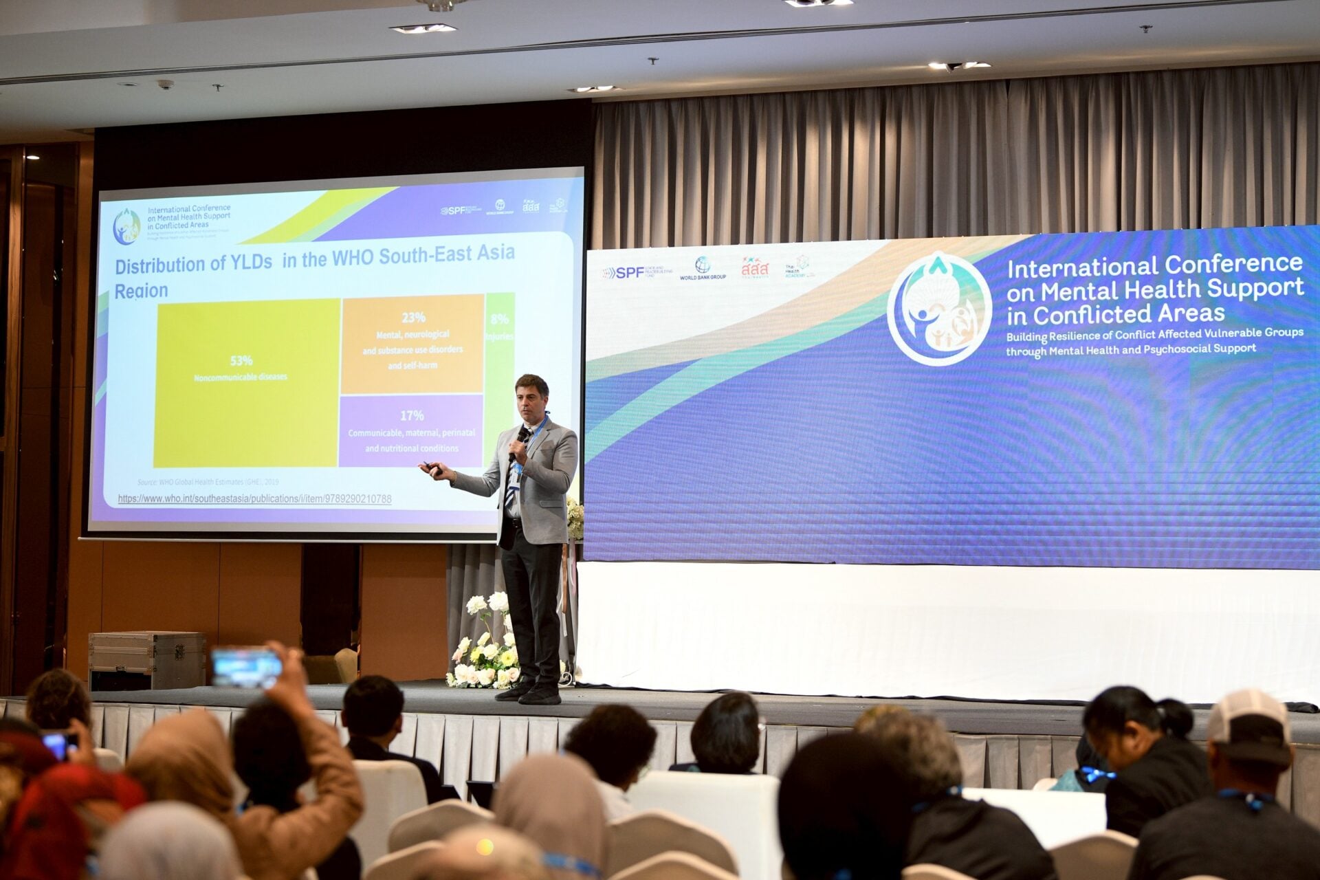 ดร.อันเดรีย บรูนี ที่ปรึกษาด้านสุขภาพจิตระดับภูมิภาคองค์การอนามัยโลก สำนักงานภูมิภาคเอเชียตะวันออกเฉียงใต้ (WHO SEARO) กล่าวว่า สุขภาพจิตและการสนับสนุนทางจิตสังคม (MHPSS) ต้องถูกมองเป็นภารกิจเร่งด่วนในการฟื้นฟูสังคม ไม่ใช่เพียงการรักษาเฉพาะบุคคล ในภูมิภาคเอเชียตะวันออกเฉียงใต้ ภาระด้านสุขภาพจิตคิดเป็นราว 23% ของภาระทางสาธารณสุขทั้งหมด การทบทวนงานจิตสังคมไม่ได้หมายถึงการทิ้งเครื่องมือหรือแนวทางเดิม แต่คือการใช้เครื่องมืออย่างมีวิจารณญาณ เชื่อมโยงข้อมูล หลักฐาน และบริบทเข้าด้วยกัน และมองสุขภาพจิตเป็นส่วนหนึ่งของการฟื้นฟูสังคมทั้งระบบ ซึ่งเป้าหมายไม่ใช่เพียงการลดอาการทุกข์ใจ แต่คือการสร้างเงื่อนไขให้ผู้คนและชุมชนสามารถฟื้นตัว ดำรงชีวิต และก้าวต่อไปได้อย่างมีศักดิ์ศรี