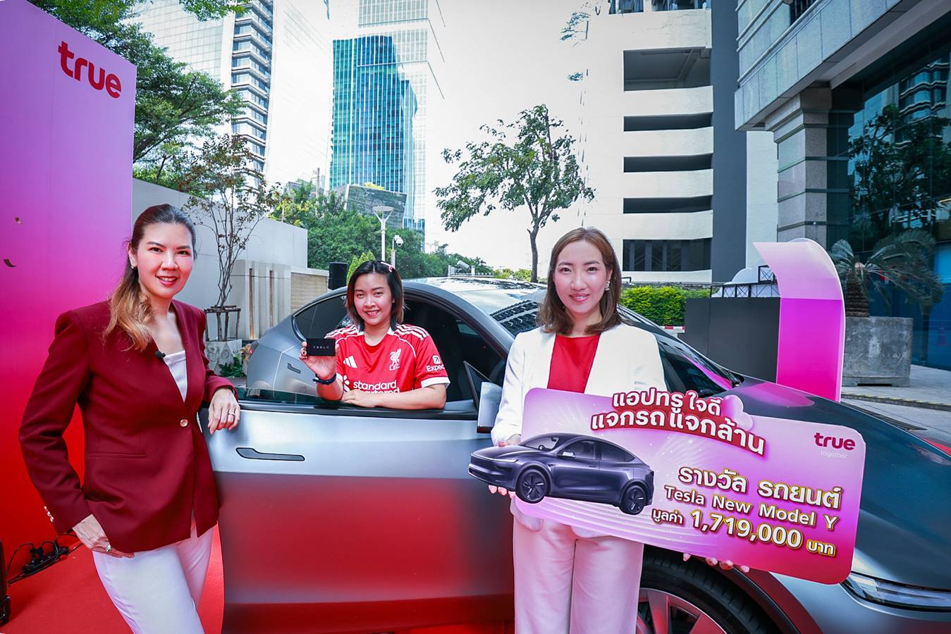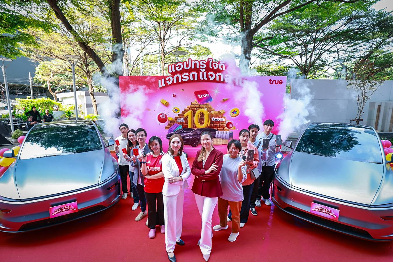 เมื่อไลฟ์สไตล์ดิจิทัลเปลี่ยนเป็นปรากฏการณ์ความสุขระดับเวิลด์คลาส... ทรู คอร์ปอเรชั่น โดย คุณนิธิมนต์ สุธาวิวัฒน์ หัวหน้าฝ่ายดิจิตัลคอมเมิร์ซ และการตลาด พร้อมด้วย คุณสรรค์พิจิตร เอี่ยมชีรางกูร หัวหน้าสายงานบริหารความสัมพันธ์และผสานสิทธิประโยชน์ลูกค้า ร่วมส่งมอบกุญแจสู่ยานยนต์แห่งอนาคต Tesla New Model Y มูลค่า 1.719 ล้านบาท จำนวน 2 คัน ให้แก่ คุณสุภารี กัลยาณพันธ์ และ คุณอัญเชิญ นิยมทัศน์ ผู้โชคดีที่เปลี่ยนการใช้งาน แอปทรู ในชีวิตประจำวันให้กลายเป็นรางวัลใหญ่จากแคมเปญ “แอปทรูใจดี แจกรถ แจกล้าน” พร้อมขนทัพรางวัลอื่น ๆ ทั้งทองคำแท่ง และสมาร์ทโฟนรุ่นเรือธง รวมมูลค่ากว่า 10 ล้านบาท โดยแคมเปญนี้ได้รับกระแสตอบรับอย่างล้นหลาม ซึ่งสะท้อนความสำเร็จของการยกระดับบริการผ่าน “แอปทรู” ที่เกิดจากการวิเคราะห์พฤติกรรมลูกค้าเชิงลึก จนตกผลึกเป็นศูนย์รวมบริการที่ ‘รวมทุกเรื่อง ครบจบ ในที่เดียว’ พร้อมตอบโจทย์ทุกไลฟ์สไตล์ให้ สะดวก รู้ใจ โดนใจ และสบายใจ ยิ่งกว่าเดิม