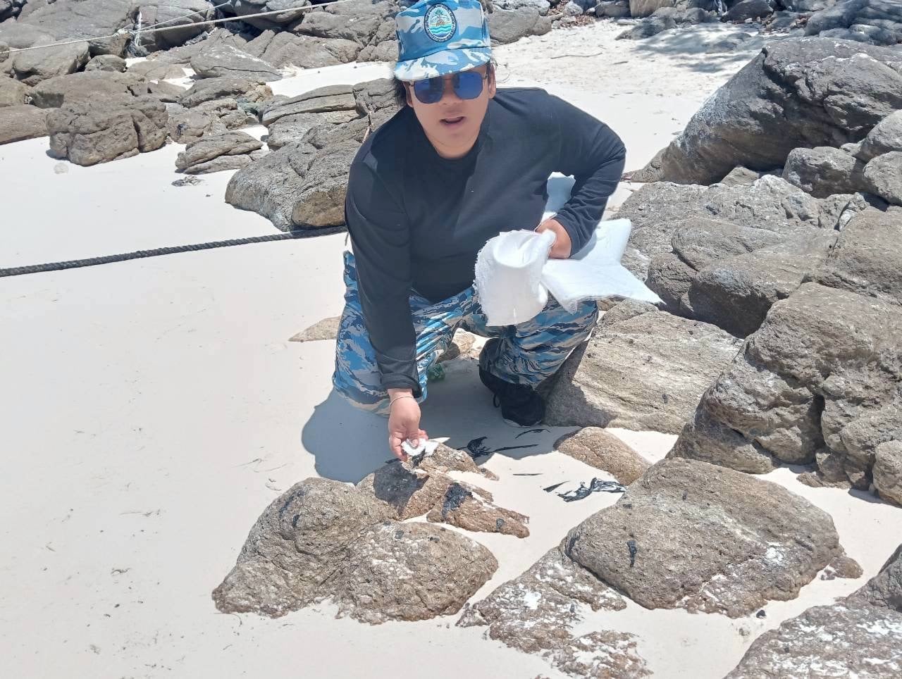 ขณะที่ ดร.ปิ่นสักก์ สุรัสวดี อธิบดีกรมทรัพยากรทางทะเลและชายฝั่ง สั่งระดมเจ้าหน้าที่กว่า 30 นาย ลงพื้นที่อ่าวปะตก (อ่าวพลับพลา) และอ่าวสยาม เพื่อเก็บรวบรวมก้อนน้ำมันที่ตกค้างบริเวณหาดทรายและโขดหิน ลดผลกระทบต่อทรัพยากรธรรมชาติและการท่องเที่ยว โดยพบว่ายังมีคราบน้ำมันบางส่วนเกาะติดโขดหินในอ่าวสยาม เนื่องจากน้ำมันละลายปะปนกับพื้นผิวหินและทราย ทำให้การจัดเก็บเป็นไปด้วยความยากลำบาก เจ้าหน้าที่จะติดตามและดำเนินการอย่างต่อเนื่อง