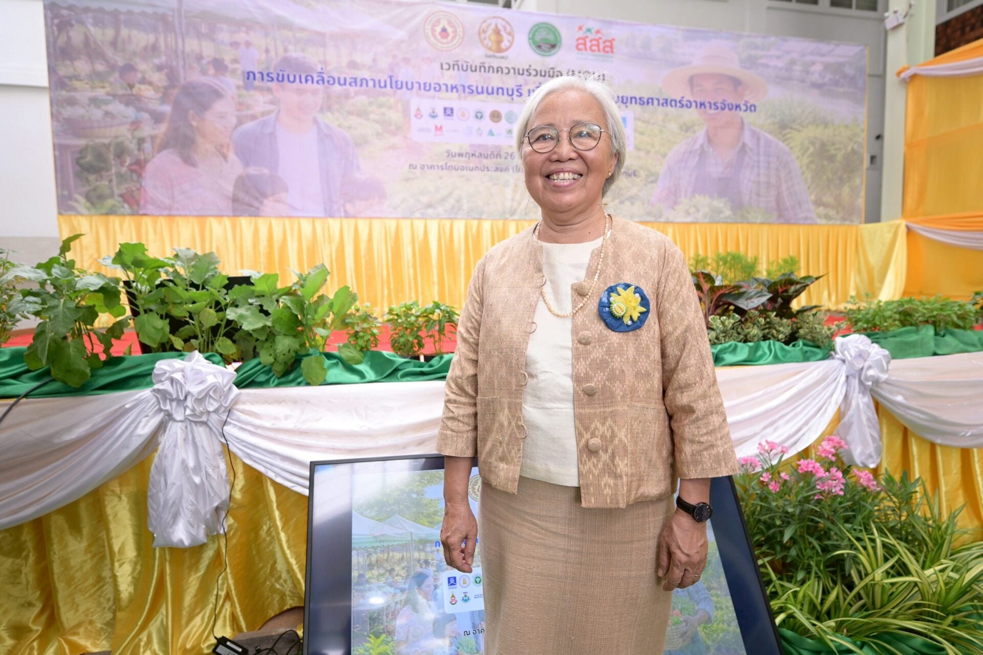 นางระวีพรรณ แก้วเพียงเพ็ญ รองผู้ว่าราชการจังหวัดนนทบุรี กล่าวว่า คุณภาพชีวิตที่ดีจะเริ่มต้นจากอาหาร เราจึงต้องมีวัตถุดิบในเรื่องของสิ่งที่จะไปสู่อาหารที่ดีปลอดภัยก่อนเบื้องต้น ซึ่งทางภาคราชการกับทางภาคประชาชน โดยเฉพาะเกษตรกรก็ต้องมีการขับเคลื่อนร่วมมือกันในการที่จะสร้างอาหารให้ปลอดภัยก็เริ่มตั้งแต่เรื่องของมาตรฐาน GIP หรือ PGS จนไปสู่เกษตรอินทรีย์
