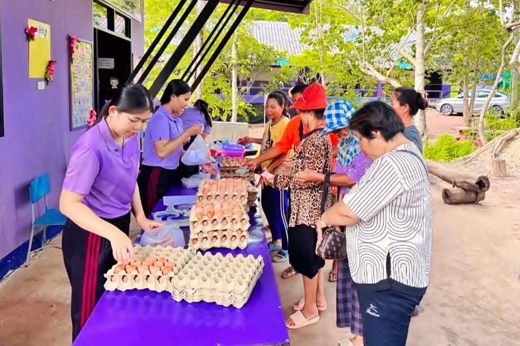 ที่โรงเรียนแห่งนี้ ไข่ไก่ไม่ใช่เพียงวัตถุดิบประกอบอาหาร แต่กลายเป็น “โปรตีนหลักประจำโรงเรียน” ที่เด็กๆ ได้รับประทานไม่น้อยกว่า 3 วันต่อสัปดาห์ ทุกวันจันทร์–พุธ–ศุกร์ โดยจัดเวรประจำวันให้เด็กๆ หมุนเวียนดูแลงานในโรงเรือน พร้อมทำงานร่วมกับคนพิการในหมู่บ้านที่เป็นลูกจ้างโครงการพิเศษของซีพีเอฟ ให้มีอาชีพมีรายได้ที่มั่นคง