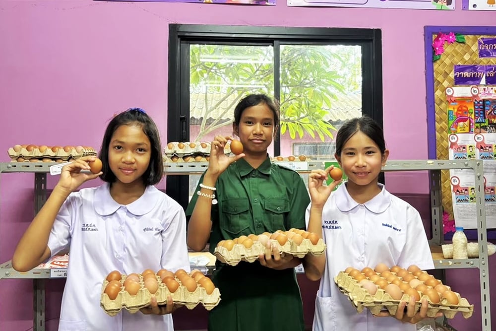 “การเลี้ยงไก่ไข่ของเราไม่เพียงแต่สร้างอาหารทั้งที่โรงเรียนและที่บ้าน แต่ยังช่วยสร้างอาชีพในชุมชนด้วยค่ะ”