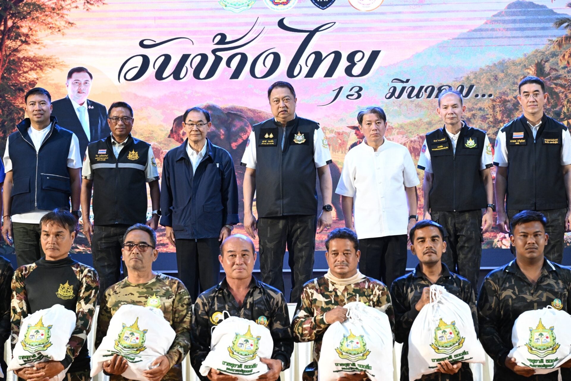 โดยกิจกรรมในวันนี้มีวัตถุประสงค์เพื่อทำบุญอุทิศส่วนกุศลแก่ช้างป่าและคนที่เสียชีวิตจากการเผชิญเหตุในพื้นที่ จากนั้นมีพิธีมอบรางวัลให้แก่นักเรียนที่ชนะเลิศการประกวดวาดภาพ หัวข้อ “วันช้างไทย” และมอบถุงยังชีพให้เจ้าหน้าที่ชุดเคลื่อนที่เร็วเฝ้าระวัง ผลักดันช้างป่าและแก้ไขปัญหาช้างป่าออกนอกพื้นที่ จำนวน 31 ชุด โอกาสนี้ ท่านรมว.ทส.ได้มอบเงินเยียวยาค่าเสียหายที่เกิดจากช้างป่า จากระเบียบกรมอุทยานแห่งชาติ สัตว์ป่า และพันธุ์พืช ว่าด้วยการจ่ายเงินช่วยเหลือเยียวยาผู้ได้รับผลกระทบจากช้างป่าจากงบกลาง พ.ศ. 2568 และปล่อยขบวนชุดเคลื่อนที่เร็วเฝ้าระวังผลัดกดันช้างป่าและแก้ไขปัญหาช้างป่าออกนอกพื้นที่