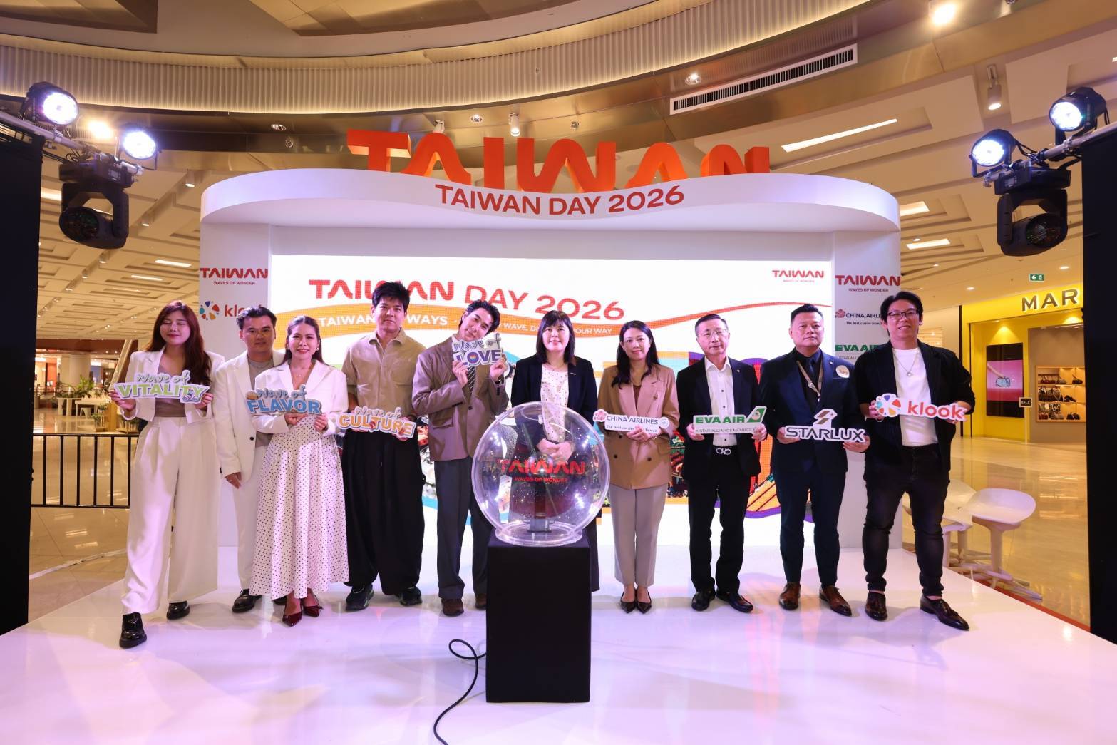 สำนักงานการท่องเที่ยวไต้หวันจัดงานแถลงข่าวและกิจกรรมสัมผัสประสบการณ์สุดพิเศษ “Taiwan Day 2026” อย่างยิ่ง ใหญ่เมื่อวันที่ 13 มีนาคมณศูนย์การค้าเซ็นทรัลพาร์คภายใต้ธีม “Taiwan 100 Ways” พร้อมเชิญอินฟลูเอนเซอร์ชื่อดัง ของไทย 4 รายผู้เป็นตัวแทนในแต่ละธีมการท่องเที่ยวได้แก่ไปกันนะ : Pai Gun Na ตัวแทน Waves of Flavor, กอล์ฟ มาเยือนตัวแทน Waves of Culture, Natcha NCS ตัวแทน Waves of Vitality และ Koendanai ตัวแทน Waves of Love เพื่อประกาศเริ่มแผนการตลาดสำหรับตลาดไทยประจำปี 2569 อย่างเต็มรูปแบบภายในงานคับคั่งไปด้วยสื่อมวลชน พันธมิตรในอุตสาหกรรมท่องเที่ยว และประชาชนทั่วไปเข้าร่วมเป็นสักขีพยานในการ