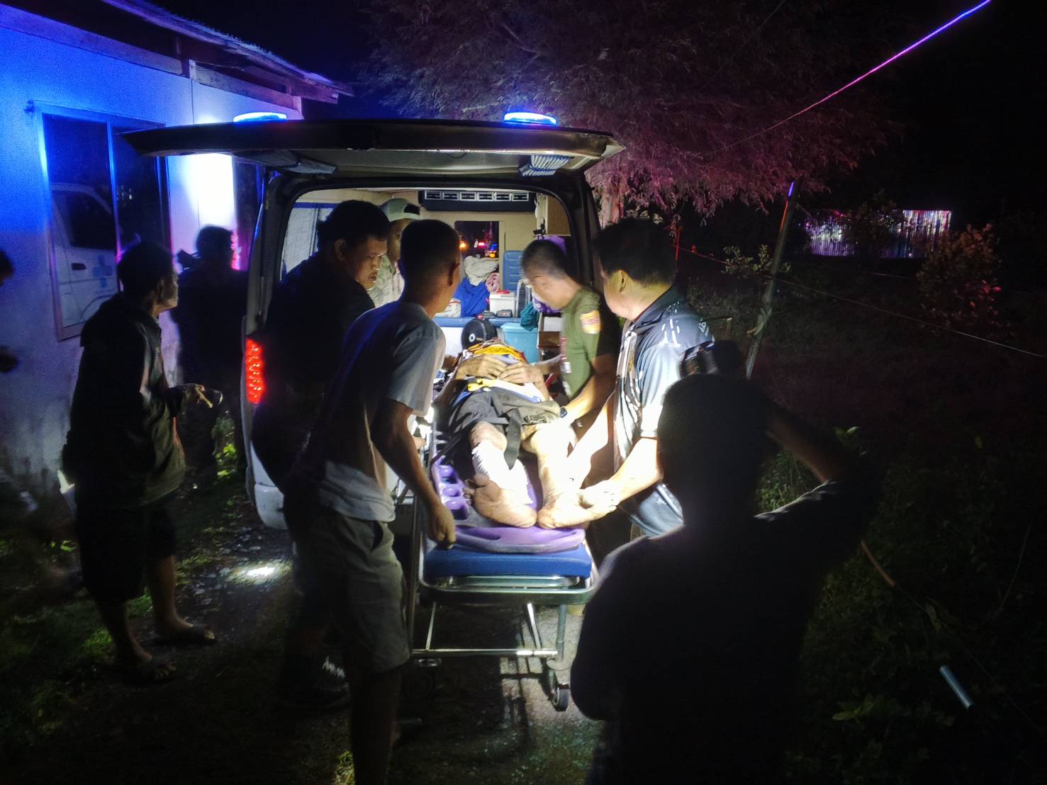 จากการตรวจสอบพบผู้ได้รับบาดเจ็บคือ นายเฮ็ง แซ่หรือ อายุ 87 ปี ถูกช้างป่าซึ่งเป็นช้างหนุ่มที่เพิ่งแยกออกจากโขลงทำร้าย โดยพบบาดแผลบริเวณศีรษะ ลำตัว และแผลเปิดที่ขาขวา ในขณะเกิดเหตุยังมีสติ เจ้าหน้าที่และหน่วยกู้ชีพตำบลสาริกาได้เร่งนำตัวส่งรักษาที่โรงพยาบาลนครนายก