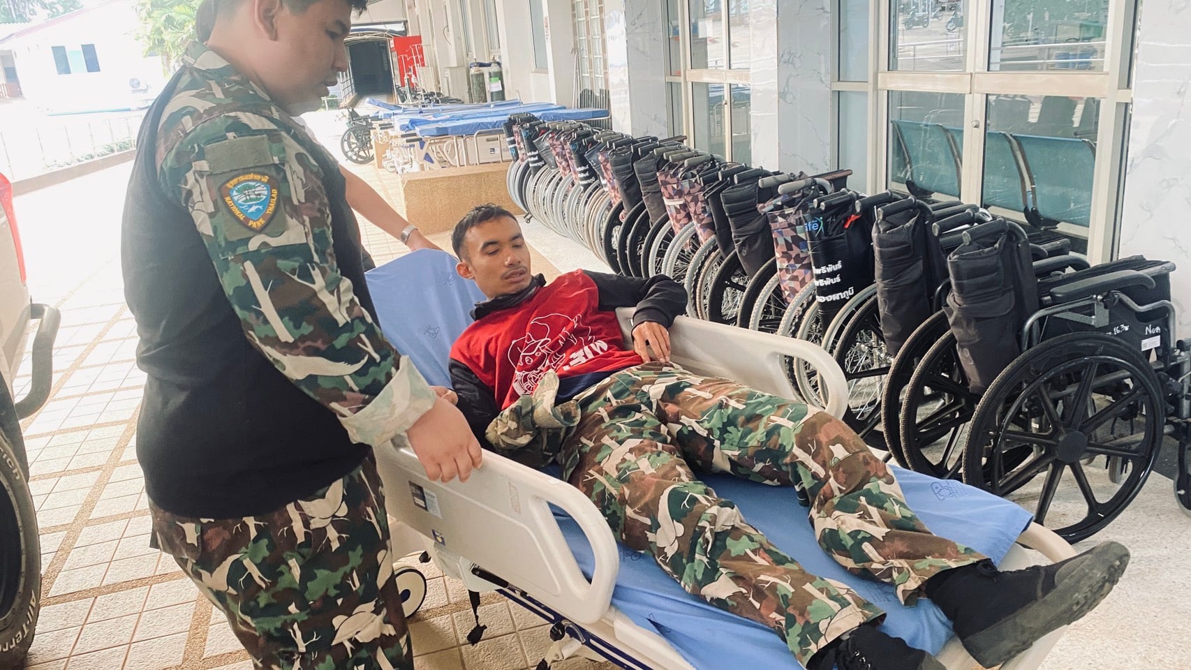 ▪️กรณีนายนพดล อยู่นุช พนักงานจ้างเหมา (TOR): ประสบอุบัติเหตุขณะนำกำลังเข้าปิดล้อมจับกุมกลุ่มผู้ลักลอบตัดไม้บริเวณ "ป่าห้วยขนุน" ซึ่งเป็นพื้นที่หุบเขาลาดชัน โดยในระหว่างวิ่งไล่กวดผู้กระทำผิด นายนพดลได้เสียหลักล้มกระแทกโขดหินอย่างรุนแรง เป็นเหตุให้กระดูกขาซ้ายหัก เพื่อนร่วมงานต้องเร่งแบกหามออกจากป่าลึกเพื่อส่งโรงพยาบาลทองผาภูมิ โดยมีกำหนดเข้ารับการผ่าตัดใหญ่ในวันที่ 17 มีนาคมนี้