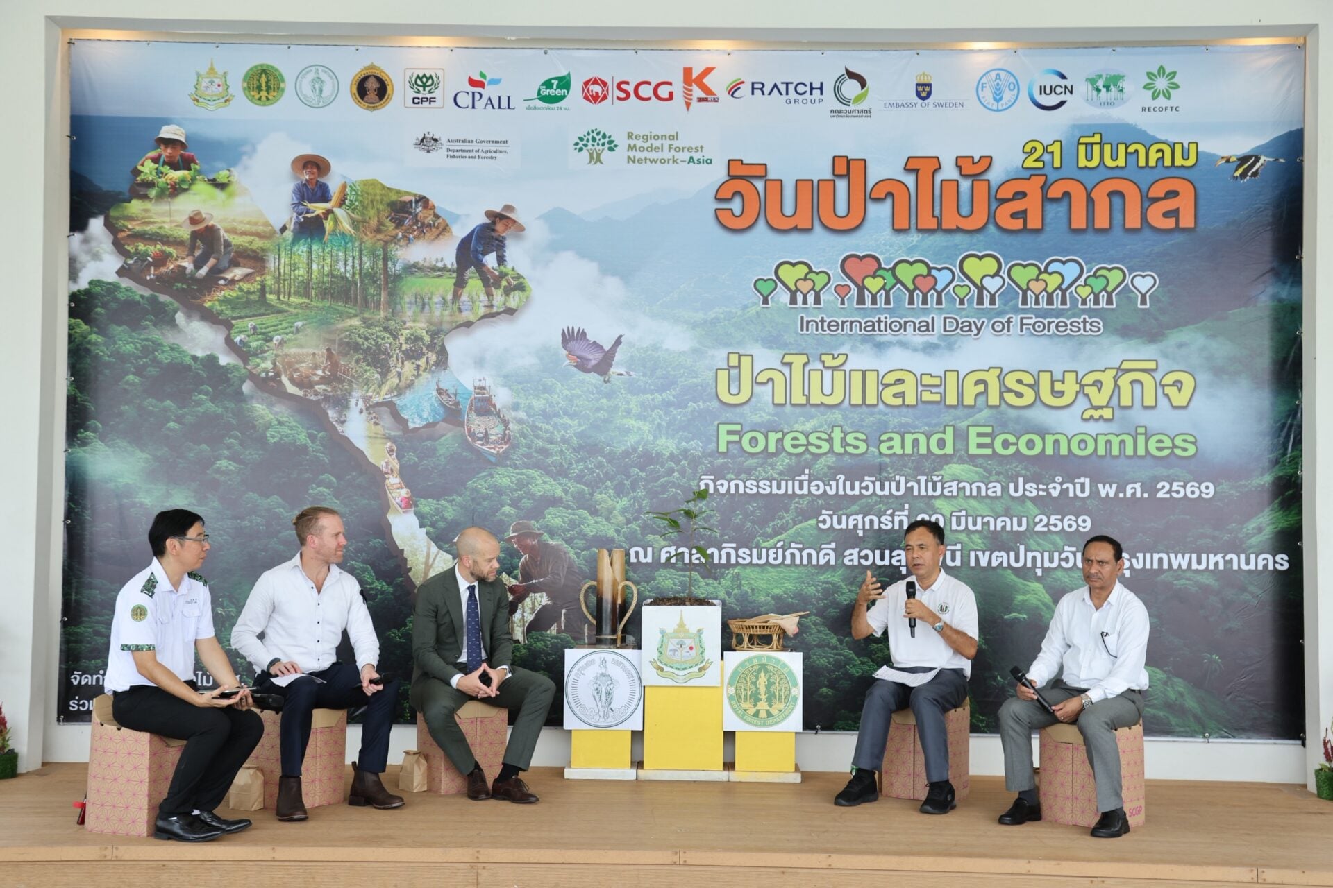 นอกจากนี้ ยังมีเวทีเสวนาในหัวข้อ ป่าไม้กับเศรษฐกิจ โดยมีนายมนตรี อินต๊ะเสน เป็นผู้ดำเนินการเสวนา มี Mr. Per Linnér อุปทูต จากสถานทูตสวีเดนประจำประเทศไทย ร่วมเสวนาในประเด็น Wood City (Stockholm Wood City) ซึ่งเป็นเมืองที่มีโครงการก่อสร้างด้วยไม้ขนาดใหญ่ที่สุดในโลก มีพื้นที่ครอบคลุมกว่า 2.5 แสนตารางเมตร ซึ่งผสมผสานที่อยู่อาศัย ที่ทำงาน ร้านอาหาร ร้านค้าต่าง ๆ เข้าด้วยกัน, Mr. Rob Atkinson อัครราชทูตที่ปรึกษาด้านการเกษตร จากสถานเอกอัครราชทูตออสเตรเลียประจำประเทศไทย เสวนาในประเด็น ผลิตภัณฑ์ไม้ที่นำเข้ามาจำหน่ายในประเทศออสเตรเลีย ต้องดำเนินการตรวจสอบอย่างรอบคอบว่าเป็นไม้ที่ถูกกฎหมายทุกขั้นตอน ไม่ใช่ไม้ที่ถูกตัดออกมาจากป่าอนุรักษ์