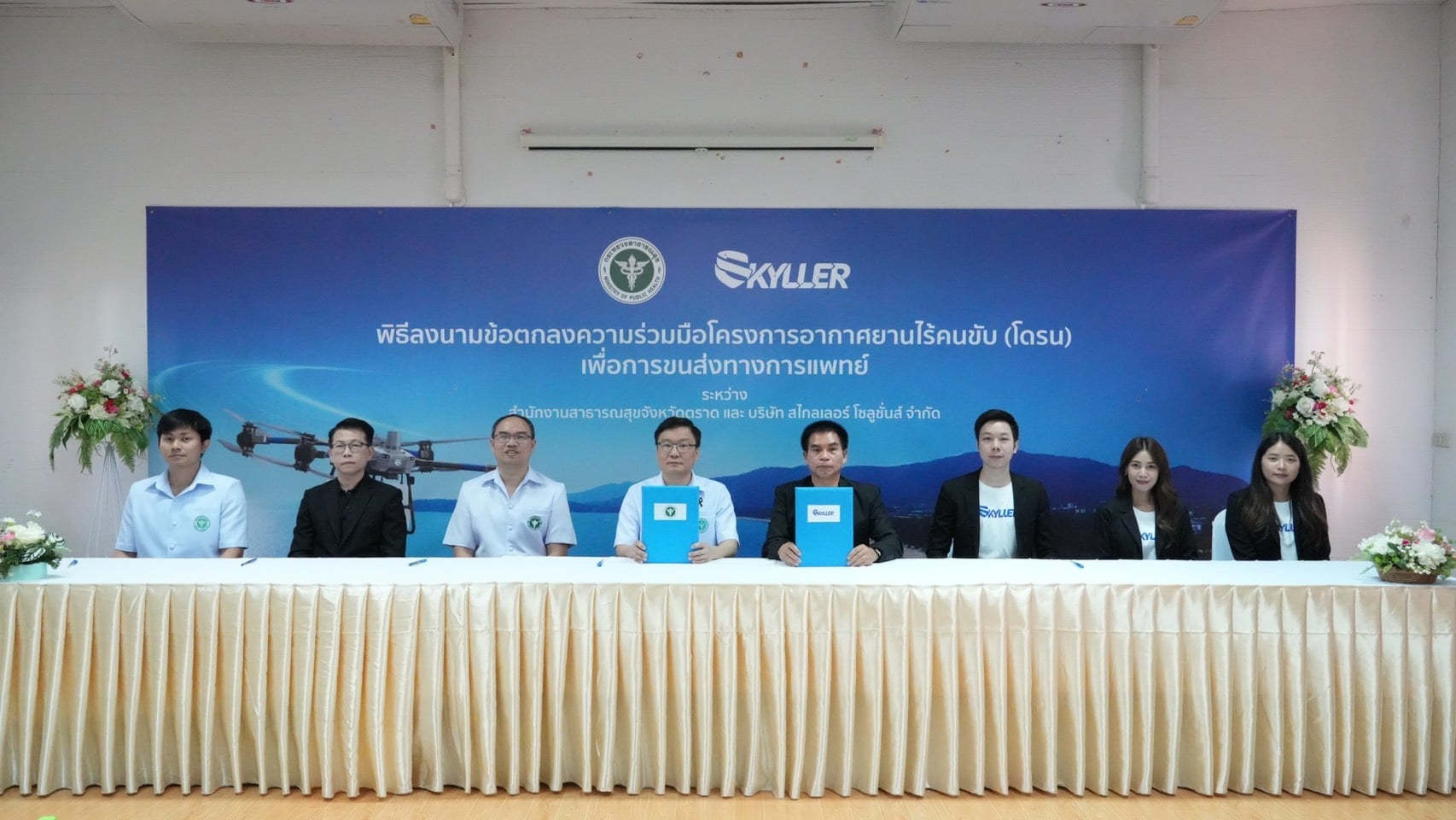 บริษัท สไกลเลอร์ โซลูชั่นส์ จำกัด หรือ Skyller Solutions ผู้เชี่ยวชาญด้านการให้บริการอากาศยานไร้คนขับ (UAV) หรือโดรน ประกาศลงนามบันทึกข้อตกลงความร่วมมือ (MOU) ร่วมกับสำนักงานสาธารณสุขจังหวัดตราด (สสจ.ตราด) นำโดยนายแพทย์ธนะวัฒน์ วงศ์ผัน นายแพทย์สาธารณสุขจังหวัดตราด เดินหน้าโครงการนำร่อง “โดรนขนส่งเวชภัณฑ์ทางการแพทย์” เมื่อวันที่ 16 มีนาคม พ.ศ.2569 ณ โรงพยาบาลแหลมงอบ จังหวัดตราด เพื่อยกระดับโครงสร้างพื้นฐานด้านการแพทย์ฉุกเฉินในพื้นที่จังหวัดตราด ความร่วมมือครั้งนี้มีวัตถุประสงค์เพื่อยกระดับโครงสร้างพื้นฐานด้านการขนส่งเวชภัณฑ์ในพื้นที่เกาะและชายฝั่งที่เข้าถึงยาก และเพิ่มความรวดเร็วในการเข้าถึงบริการสาธารณสุขของประชาชน โดยใช้เทคโนโลยีอากาศยานไร้คนขับเข้ามาทลายข้อจำกัดด้านการคมนาคมและระยะทาง