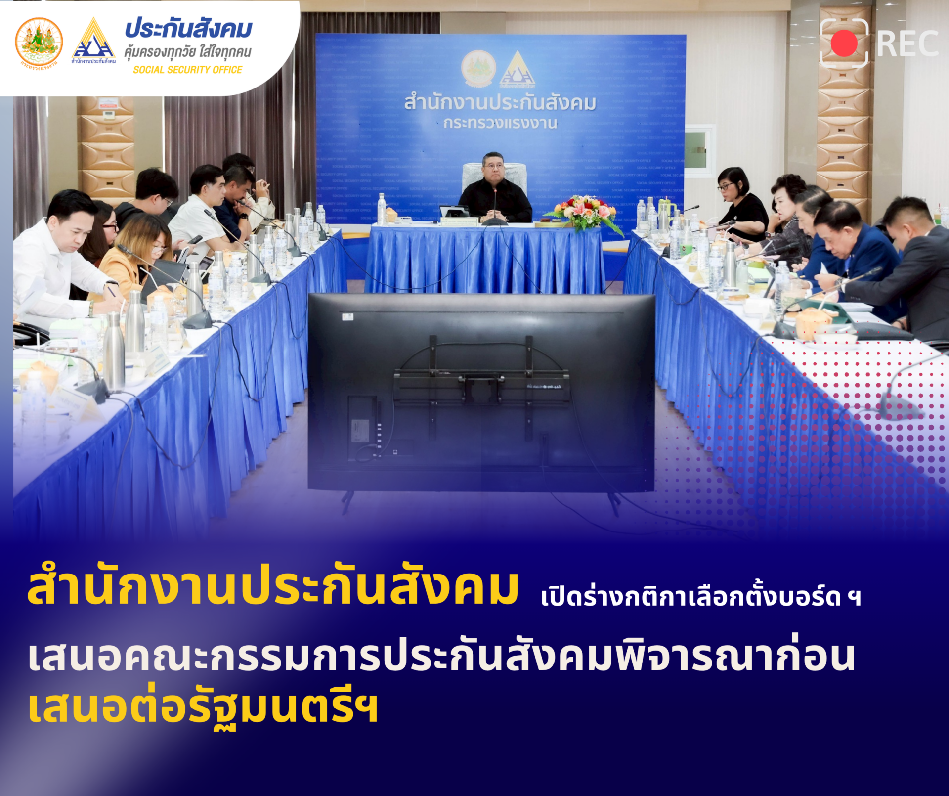 ในฐานะโฆษกสำนักงานประกันสังคม ได้กล่าวภายหลังประชุมคณะกรรมการประกันสังคมว่า ในที่ประชุมฯ มีวาระสำคัญคือการเสนอรายงานสรุปผลการรับฟังความคิดเห็น และร่างระเบียบกระทรวงแรงงานว่าด้วยหลักเกณฑ์และวิธีเลือกตั้งผู้แทนฝ่ายนายจ้างและผู้แทนฝ่ายผู้ประกันตนเป็นกรรมการในคณะกรรมการประกันสังคม พ.ศ. .... (ร่างระเบียบเลือกตั้ง) ต่อที่ประชุมคณะกรรมการประกันสังคม เพื่อพิจารณาให้ความเห็นก่อนเสนอรัฐมนตรีว่าการกระทรวงแรงงานพิจารณาตามขั้นตอนทางกฎหมาย ซึ่งในการดำเนินการดังกล่าวเป็นไปตามพระราชบัญญัติหลักเกณฑ์การจัดทำร่างกฎหมายและการประเมินผลสัมฤทธิ์ของกฎหมาย พ.ศ. 2562