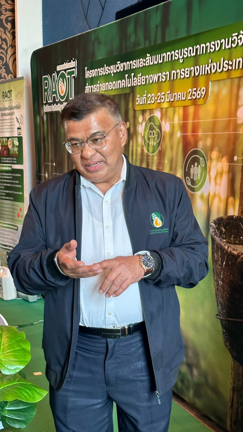 กยท. ผนึกกำลังนักวิจัย นักวิชาการ คณาจารย์ และ ภาคเอกชน ร่วมขับเคลื่อนงานวิจัยและนวัตกรรมยาง ตอบโจทย์ความต้องการตั้งแต่ต้นน้ำจนถึงปลายน้ำ จัดสรรงบรองรับกว่า 200 ล้านบาท/ปี หวังพัฒนาเพิ่มมูลค่าผลักดันให้ไทยเป็นศูนย์กลางยางพาราของโลก เร่งส่งเสริมการใช้ยางพันธุ์ใหม่ให้ผลผลิตสูง บริหารจัดการโรคยาง และการใช้น้ำหมักชีวภาพ ลดการใช้ปุ๋ยเคมี โชว์นวัตกรรมการตรวจสอบย้อนกลับเพื่อรองรับEUDR พร้อมเดินหน้าถ่ายทอดเทคโนโลยีแผ่นยางกันน้ำลาย หุ่นจำลองทางการแพทย์ ยางรัดของ และถุงมือการเกษตร