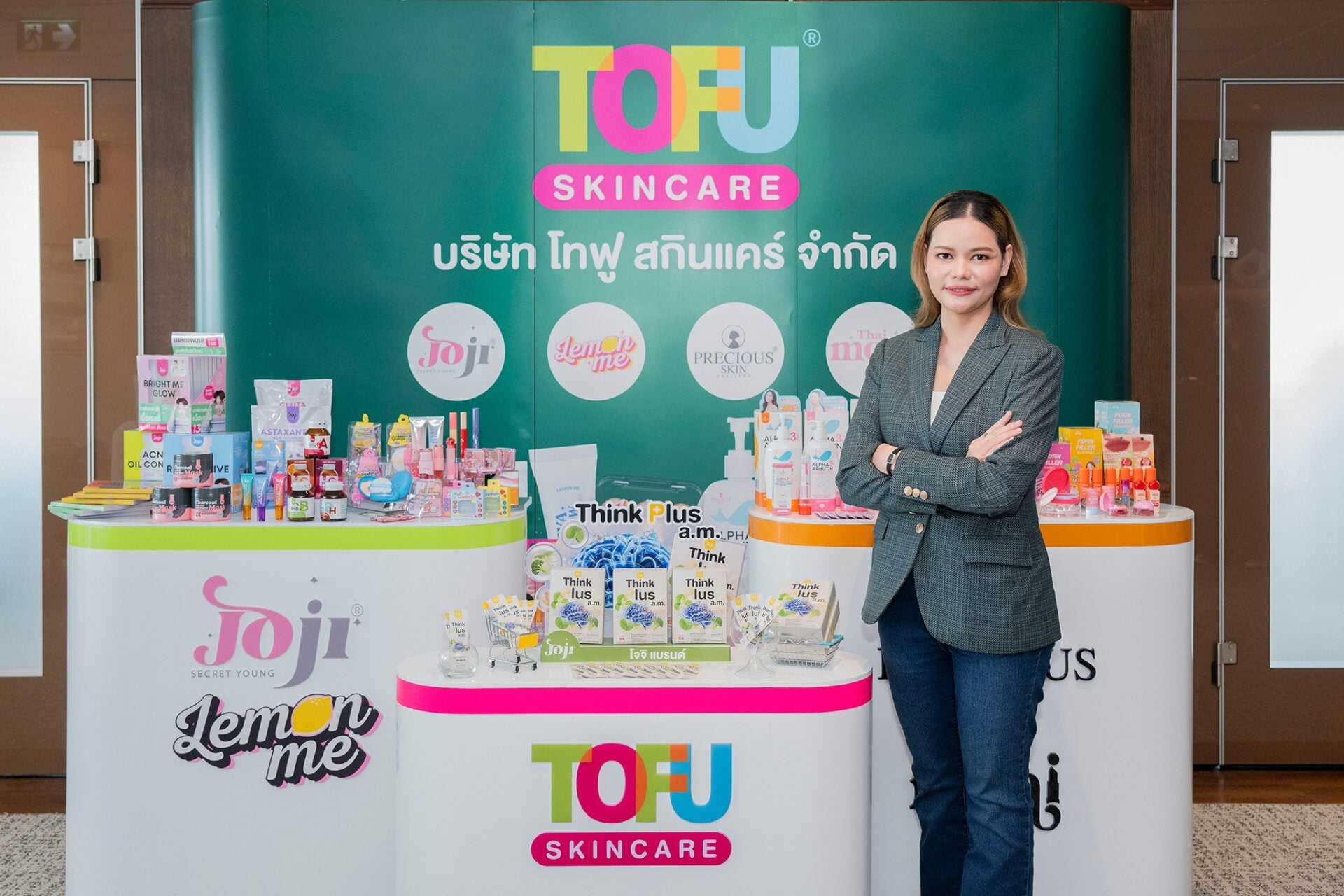 ไฮไลต์สำคัญของงานในครั้งนี้ คือการเปิดตัวผลิตภัณฑ์ต้นแบบ “Think Plus A.M.” ซึ่งพัฒนาภายใต้กลุ่ม Brain Booster & Longevity โดยความร่วมมือระหว่าง ปวริศา รัชวัลธาดากูล ประธานบริหาร บริษัท โทฟู สกินแคร์ จำกัด และ ตูน สุภัชชา ปิตินันท์ อดีตนักร้องสาวที่ผันตัวมาเป็นเจ้าของแบรนด์ ในการร่วมผลิตผลิตภัณฑ์ต้นแบบ Think Plus A.M. ผ่านสารสกัดนวัตกรรม 2 ชนิดที่มีงานวิจัยรองรับ ได้แก่