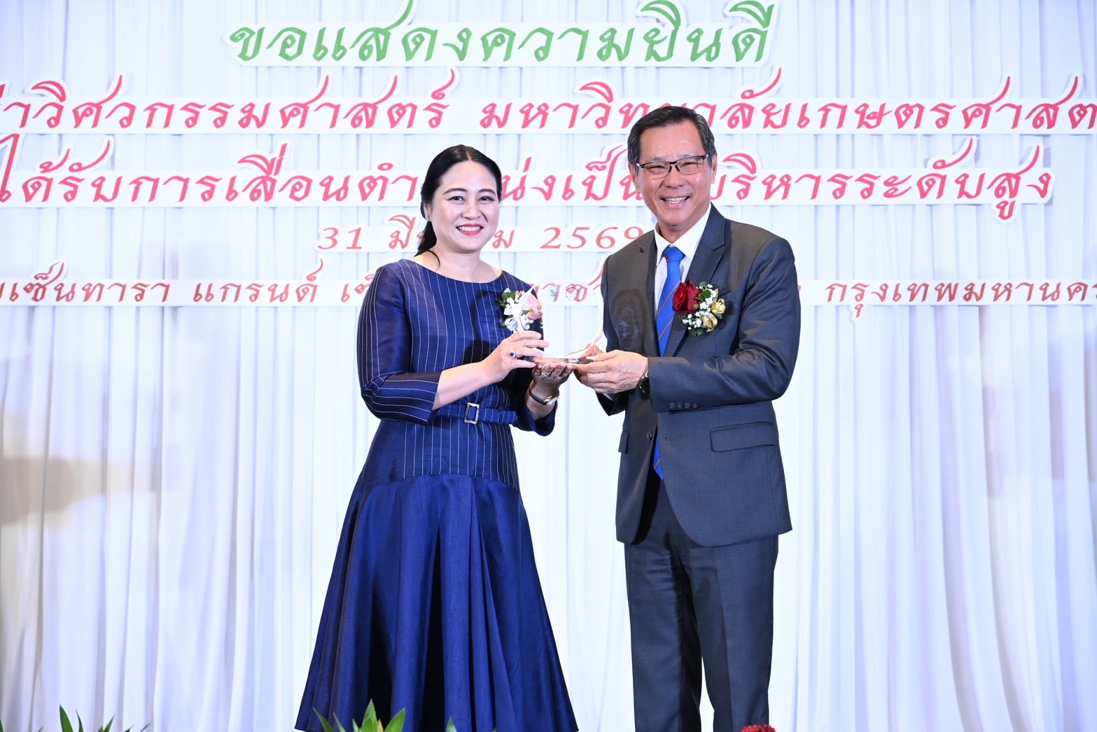 วันนี้ (31 มีนาคม 2569) ดร.รวีวรรณ ภูริเดช ปลัดกระทรวงทรัพยากรธรรมชาติและสิ่งแวดล้อม เข้าร่วมงานแสดงความยินดีแก่นิสิตเก่าวิศวกรรมศาสตร์ มหาวิทยาลัยเกษตรศาสตร์ ที่ได้รับการเลื่อนตำแหน่งเป็นผู้บริหารระดับสูง ซึ่งจัดขึ้นโดยสมาคมศิษย์เก่าวิศวกรรมชลประทาน ในพระบรมราชูปถัมภ์ ร่วมกับสมาคมนิสิตเก่าวิศวกรรมศาสตร์มหาวิทยาลัยเกษตรศาสตร์ โดยมีนิสิตเก่า และผู้แทนจากหลากหลายภาคส่วนเข้าร่วมแสดงความยินดี ณ ห้องวิภาวดี บอลรูม AB โรงแรมเซ็นทารา แกรนด์ แอท เซ็นทรัลพลาซ่า ลาดพร้าว กรุงเทพมหานคร