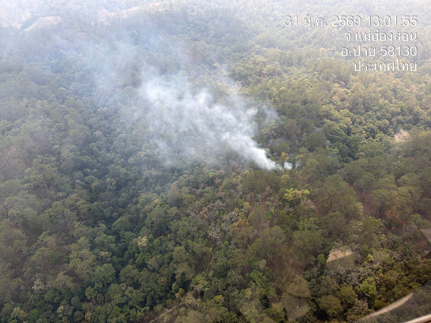ขณะเดียวกัน กระทรวงฯ เดินหน้าปฏิบัติการภาคสนามอย่างต่อเนื่อง โดยเมื่อวันที่ 31 มีนาคม 2569 ได้ส่งชุดอากาศยานเข้าดับไฟป่าในจังหวัดแม่ฮ่องสอน ใช้เฮลิคอปเตอร์ 2 ลำ สนับสนุนภารกิจในอำเภอปายและอำเภอเมือง โดยผลการปฏิบัติการในพื้นที่อำเภอปาย บินทิ้งน้ำ 28 เที่ยว รวม 14,000 ลิตร ควบคุมไฟได้บางส่วน อำเภอเมืองแม่ฮ่องสอน บินทิ้งน้ำ 8 เที่ยว รวม 4,000 ลิตร ควบคุมไฟได้บางส่วน