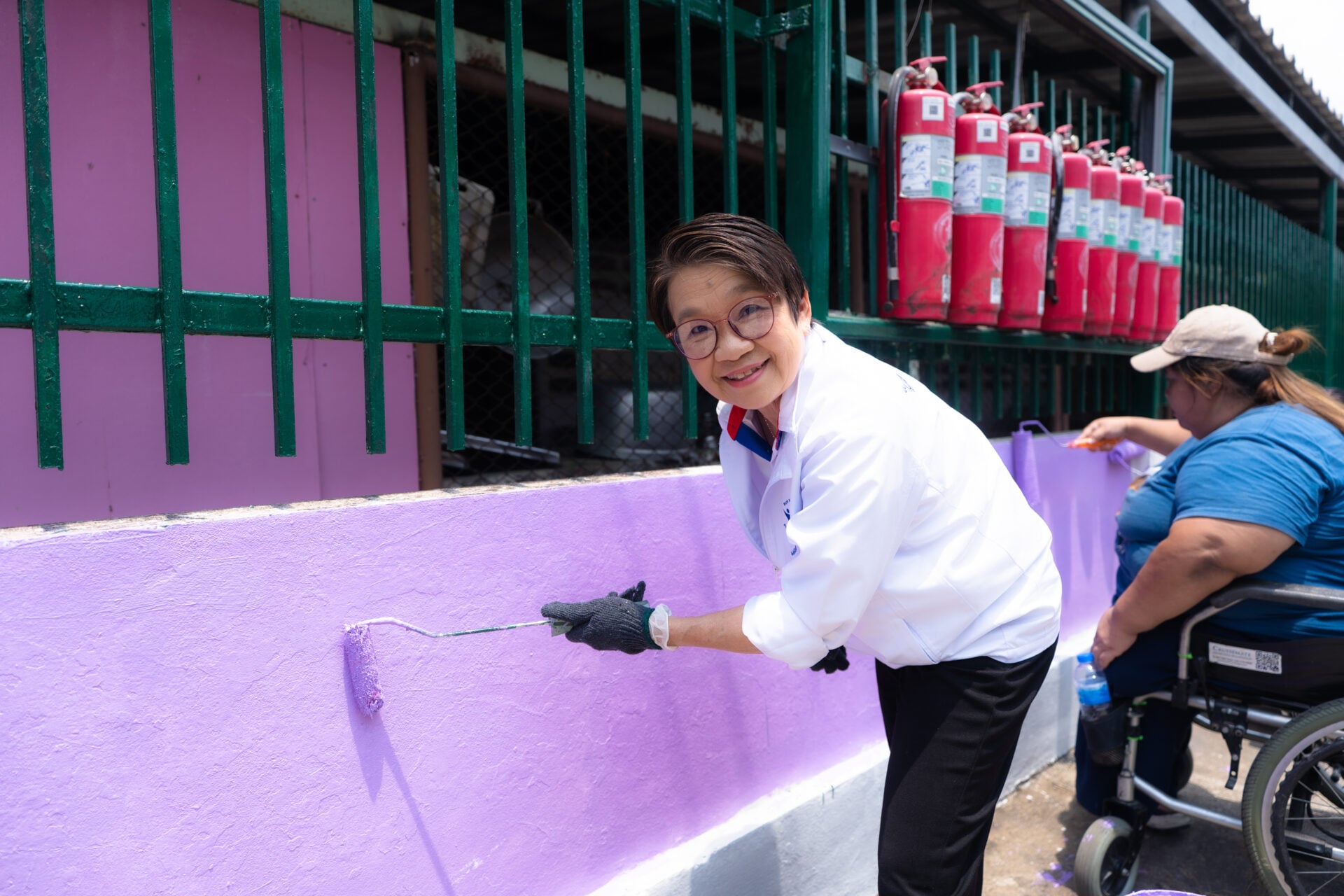 โดยกิจกรรมสาธารณประโยชน์ครั้งนี้ ได้ลงพื้นที่ปรับปรุงทัศนียภาพศูนย์พัฒนาเด็กอ่อนก่อนวัยเรียน ชุมชนเพชรสยาม นำโดยนางเธียรรัตน์ นะวะมะวัฒน์ ประธานมูลนิธิหัวใจบริสุทธิ์ ร่วมกับบริษัทไทย สมายล์ บัส และชมรมอาสาคนพิการสู้ต่อ นำโดยนายสุริยะ โกทา ประธานชมรม , นางสาวประภาวัลย์ เมฆประสาท และนางสาวเนตรนภา สมบัติยานุชิต สมาชิกชมรม เน้นการบูรณะทาสีรั้วโดยรอบศูนย์ฯ และทาสีเครื่องเล่นสนามเด็กเล่น สร้างสภาพแวดล้อมที่ดี สดใส ส่งเสริมพัฒนาการของเด็ก
