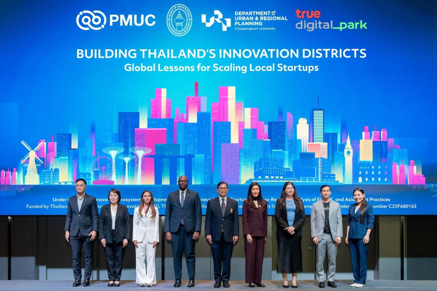 จุฬาลงกรณ์มหาวิทยาลัย โดย คณะสถาปัตยกรรมศาสตร์ และศูนย์บริการวิชาการแห่งจุฬาลงกรณ์มหาวิทยาลัย ลงนามบันทึกข้อตกลงความร่วมมือ กับ ทรู ดิจิทัล พาร์ค ศูนย์กลางเทคและสตาร์ทอัพที่ใหญ่ที่สุดในเอเชียตะวันออกเฉียงใต้ประกาศผนึกพลังขับเคลื่อนโครงการ “การพัฒนาย่านนวัตกรรมสนับสนุนผู้ประกอบการสตาร์ทอัพ ผ่านการเรียนรู้โมเดลระดับโลก” ดึงศักยภาพด้านงานวิจัยโดยเฉพาะในระดับมหาวิทยาลัย เชื่อมโยงเครือข่ายผู้ประกอบการ นักลงทุนและองค์กรธุรกิจทั้งในและต่างประเทศภายใต้ระบบนิเวศสตาร์ทอัพที่สมบูรณ์แบบครบวงจร เสริมด้วยองค์ความรู้ระดับสากลจากพันธมิตรองค์กรชั้นนำใน 3 ประเทศ คือ เนเธอร์แลนด์ สหราชอาณาจักร และ สิงคโปร์ เปิดฉากทัศน์ใหม่ในการแลกเปลี่ยนประสบการณ์และความเชี่ยวชาญ การพัฒนาโครงการร่วม และการเชื่อมโยงตลาดและแหล่งทุนระดับภูมิภาคและระดับโลก มุ่งศึกษา 3 เทคโนโลยียุทธศาสตร์ ได้แก่ อาหารแห่งอนาคต (Future Food) สุขภาพ(Health Tech) และ สิ่งแวดล้อม (Green Innovation) ตั้งเป้าเปลี่ยนงานวิจัยเชิงลึกสู่การสร้างพื้นที่เศรษฐกิจนวัตกรรมที่จับต้องได้จริง
