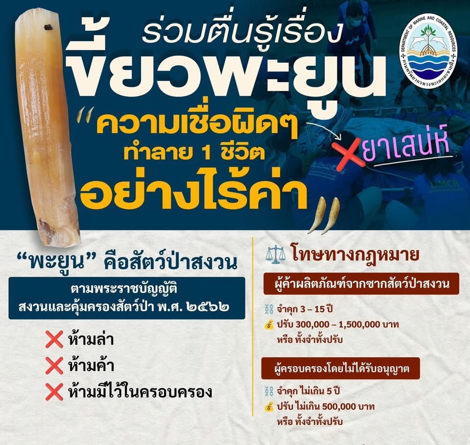 วันที่ 9 เมษายน 2569 จากกรณีพบซากพะยูน ไม่มีส่วนหัว เพศผู้ อยู่ในระยะโตเต็มวัย ยาวประมาณ 2.20 เมตร (ไม่รวมหัว) หนักโดยประมาณ 120 กิโลกรัม พบเพรียงทั่วตัว บริเวณอกด้านขวาพบรอยบาดจากวัตถุมีคม หางมีเชือกแบบเกลียวมัดเป็นเงื่อนผูกไว้กับหินใต้น้ำที่ บริเวณเกาะยาวน้อย จ.พังงา ล่าสุดนายสุชาติ ชมกลิ่น รัฐมนตรีว่าการกระทรวงทรัพยากรธรรมชาติและสิ่งแวดล้อม ได้สั่งการให้กรมทรัพยากรทางทะเลและชายฝั่งและหน่วยงานที่เกี่ยวข้อง เร่งหาสาเหตุการตายและดำเนินการสืบสวนหาผู้กระทำผิดอย่างเร่งด่วน เน้นย้ำ "ไม่ใช่แค่นับศพ แต่ต้องเปลี่ยนเป็นรักษาชีวิต" พร้อมกำชับเจ้าหน้าที่ในพื้นที่ให้เพิ่มความเข้มงวดในการเฝ้าระวัง เพื่อป้องกันไม่ให้เกิดเหตุซ้ำอีก พร้อมมอบหมายให้ดร.รวีวรรณ ภูริเดช ปลัดกระทรวงทรัพยากรธรรมชาติและสิ่งแวดล้อม หามาตรการเชิงรุกแบบบูรณาการ ทั้งภาครัฐ เอกชน และชุมชน ผ่านแนวทางสำคัญ ได้แก่ การเฝ้าระวังและป้องกัน จัดตั้งทีมลาดตระเวนในแหล่งหญ้าทะเล ใช้เทคโนโลยีโดรนและระบบ citizen science ในการติดตามพะยูน และพิจารณาประกาศเขตคุ้มครองใหม่ การช่วยเหลือฉุกเฉิน โดยตั้งทีมกู้ชีพสัตว์ทะเล พร้อมสัตวแพทย์ประจำในโรงพยาบาลสัตว์ทะเลหายาก (ภูเก็ต/ตรัง) การป้องกันการล่า และลักลอบ พร้อมเร่งดำเนินการสืบสวนร่วมกับกรมอุทยานฯ และตำรวจในพื้นที่ โดยบังคับใช้กฎหมายตามพระราชบัญญัติสงวนและคุ้มครองสัตว์ป่า พ.ศ. 2562 ซึ่งกำหนดโทษสูงสุดจำคุก 15 ปี หรือปรับ 1.5 ล้านบาท