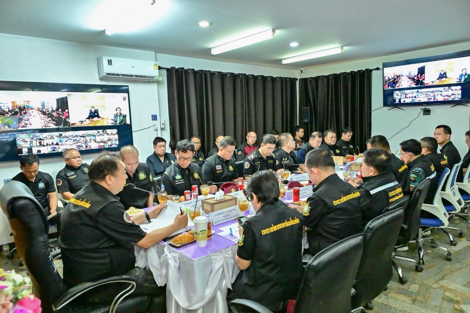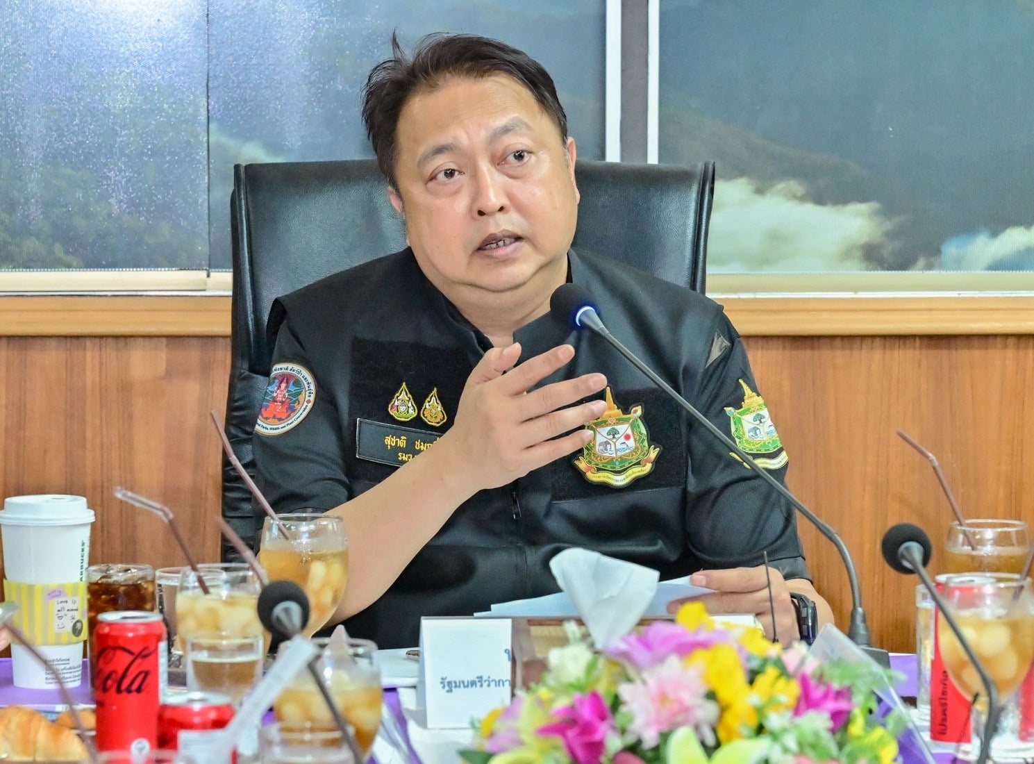 นายสุชาติ ชมกลิ่น รัฐมนตรีว่าการกระทรวงทรัพยากรธรรมชาติและสิ่งแวดล้อม (รมว.ทส.) เป็นประธานการประชุมติดตามสถานการณ์และมอบแนวทางแก้ไขปัญหาไฟป่า หมอกควัน และฝุ่นละออง ณ ห้องประชุมอุทยานแห่งชาติศรีลานนา จังหวัดเชียงใหม่ โดยมีนายอรรถพล เจริญชันษา อธิบดีกรมอุทยานแห่งชาติ สัตว์ป่า และพันธุ์พืช ในฐานะผู้อำนวยการศูนย์ปฏิบัติการเฝ้าระวัง ควบคุมไฟป่า และหมอกควัน ในพื้นที่ 14 กลุ่มป่า เข้าร่วมขับเคลื่อนมาตรการและรายงานสถานการณ์วิกฤตในพื้นที่ป่าอนุรักษ์ พร้อมคณะผู้บริหารระดับสูงจากกระทรวงทรัพยากรธรรมชาติและสิ่งแวดล้อม และกระทรวงมหาดไทย รวมถึงรองผู้ว่าราชการจังหวัดเชียงใหม่และผู้แทนจากหลายจังหวัดทั่วประเทศ การประชุมครั้งนี้จัดขึ้นในรูปแบบ Hybrid เพื่อให้เกิดความเป็นเอกภาพในการสั่งการและปฏิบัติงานทั่วประเทศ