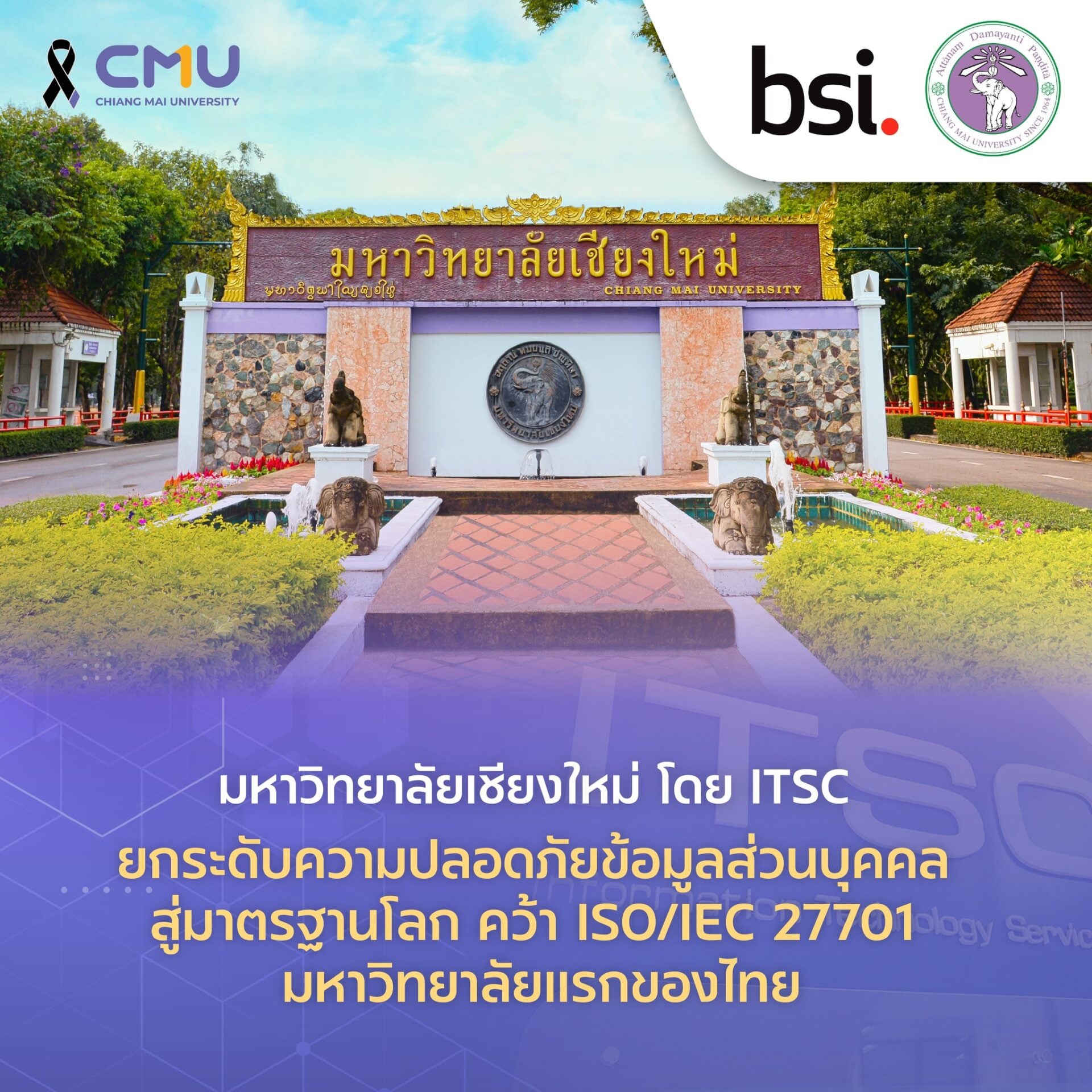 มหาวิทยาลัยเชียงใหม่ (มช.) มหาวิทยาลัยแรกของประเทศไทย คว้า ISO/IEC 27701 มาตรฐาน “ดูแลและคุ้มครองข้อมูลส่วนบุคคล” อย่างเข้มงวด ครอบคลุมทุกขั้นตอน ตั้งแต่การเก็บ ใช้ ไปจนถึงการป้องกันและรับมือเมื่อเกิดความเสี่ยง ช่วยกันก่อนเกิดเหตุ แก้ทันเมื่อมีปัญหา และลดผลกระทบให้มากที่สุดตามมาตรฐานสากล ISO/IEC 27701 ที่ออกแบบมาเพื่อการจัดการข้อมูลส่วนบุคคลโดยเฉพาะ โดยสำนักบริการเทคโนโลยีสารสนเทศ (ITSC) ได้รับการรับรองอย่างเป็นทางการเมื่อวันที่ 4 เมษายน 2569 สะท้อนว่ามช.ไม่ได้ดูแลข้อมูลเพียงในระดับพื้นฐาน แต่ยกระดับสู่ระบบที่ปลอดภัย เป็นมาตรฐาน และตรวจสอบได้ในระดับนานาชาติ