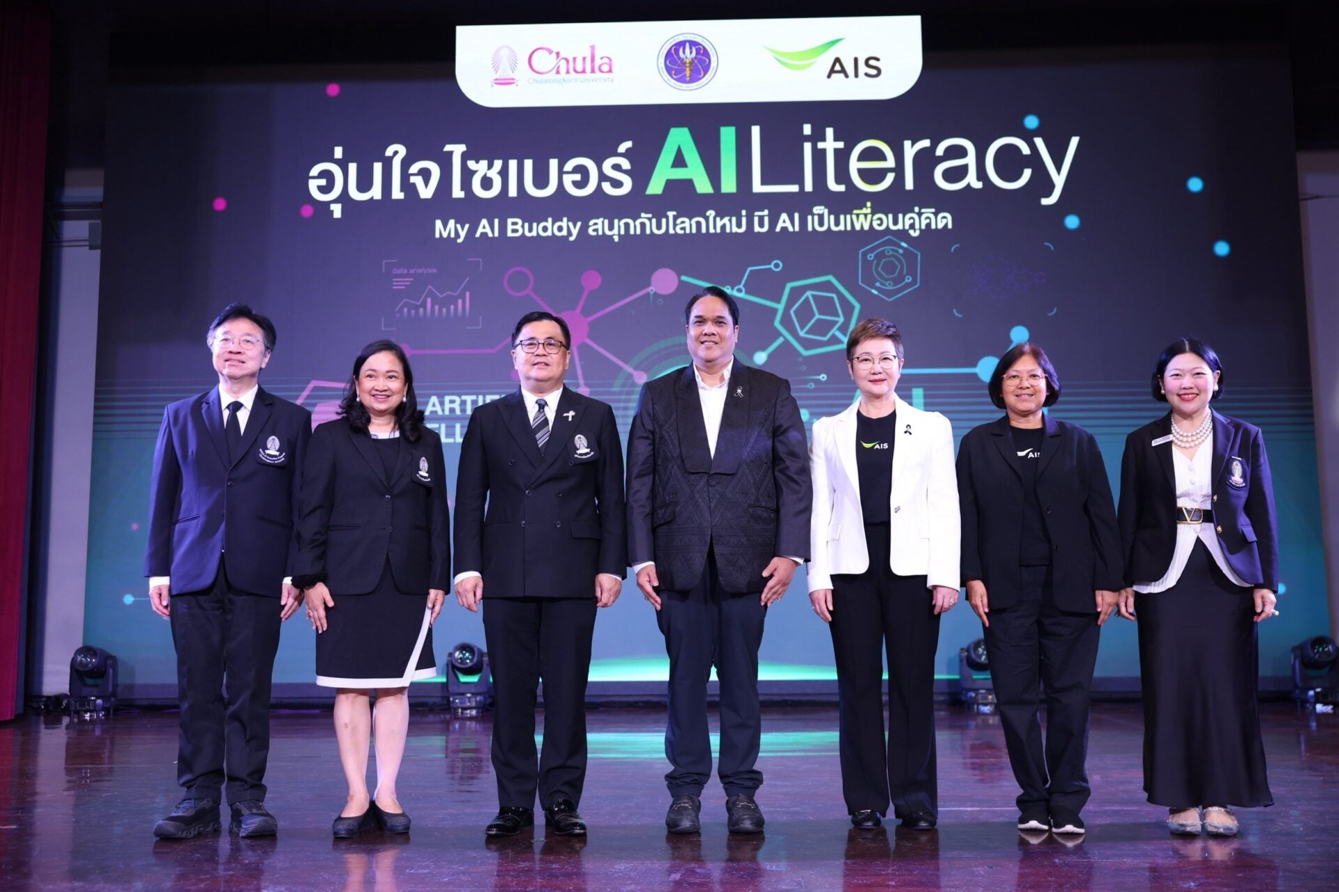 ขณะที่ นางสายชล ในฐานะภาคเอกชนผู้พัฒนาแพลตฟอร์มอย่าง AIS กล่าวว่า AIS ไม่เพียงมุ่งยกระดับเครือข่ายสู่ Autonomous Network และการนำ AI มาเป็นแกนหลักในการบริหารจัดการเท่านั้น แต่ยังเดินหน้าขับเคลื่อน Ecosystem ของปัญญาประดิษฐ์อย่างรอบด้าน ครอบคลุมตั้งแต่การพัฒนานวัตกรรมบริการที่ตอบโจทย์การใช้งาน AI ของลูกค้า อาทิ AISpace ศูนย์รวมบริการ AI, การส่งเสริมการสร้างทักษะดิจิทัลให้คนไทยทุกกลุ่มผ่านแพลตฟอร์ม Learn Di for Thais ตลอดจนการเสริมศักยภาพบุคลากรภายในองค์กรผ่านหลักสูตรด้าน AI โดยมี AIS Academy เป็นแหล่งความรู้ และล่าสุด เราตั้งใจยกระดับจาก Digital Literacy สู่ AI Literacy เพื่อสร้างภูมิคุ้มกันทางไซเบอร์ และยกระดับความรู้ด้าน AI ให้เป็นรูปธรรมมากขึ้น ผ่านหลักสูตร ‘อุ่นใจไซเบอร์ AI Literacy : My AI Buddy’ ซึ่งเป็นการต่อยอดจากโครงการ ‘อุ่นใจไซเบอร์’ ที่ดำเนินมาอย่างต่อเนื่องตั้งแต่ปี 2562 และปัจจุบันมีผู้เรียนแล้วกว่า 1.05 ล้านคน โดยเชื่อว่าหลักสูตรนี้จะช่วยให้คนไทยใช้งาน AI ได้อย่างปลอดภัยและสร้างสรรค์ สนุกกับการใช้ AI ในฐานะ ‘บัดดี้’ หรือเพื่อนคู่คิด สามารถอยู่ร่วมกับ AI ได้อย่างมั่นใจ มีความรับผิดชอบ และก้าวสู่สังคมดิจิทัลอย่างยั่งยืนไปด้วยกัน