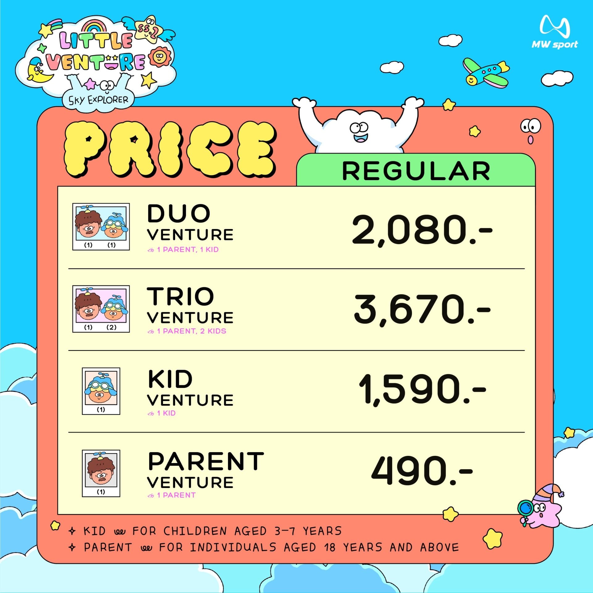 Little Venture 2026 ภายใต้ธีม “SKY Explorer” เด็ก ๆ จะได้ออกผจญภัย ในเมืองท้องฟ้า ผ่าน 12 ฐานกิจกรรมสุดท้าทาย ไม่ว่าจะเป็นการปีนป่าย ทรงตัว มุด คลาน และแก้ไขอุปสรรคต่าง ๆ ที่ออกแบบมาให้เหมาะสมกับพัฒนาการของเด็ก เสริมสร้างทั้งความแข็งแรง ความมั่นใจ และทักษะการคิดอย่างเป็นระบบ ความแตกต่างที่พิเศษของ Little Venture คือการเปิดโอกาสให้ “ครอบครัว” ได้เข้ามามีส่วนร่วมในทุกช่วงเวลา เด็ก ๆ จะได้วิ่งเคียงข้างผู้ปกครอง เรียนรู้การเผชิญความท้าทายไปด้วยกัน สร้างความผูกพันและความทรงจำดี ๆ ที่หาไม่ได้จากกิจกรรมทั่วไป