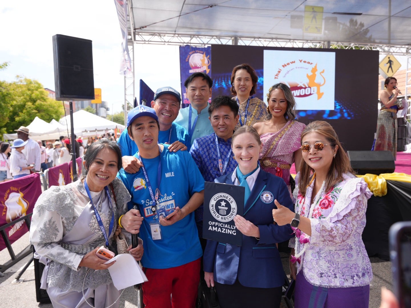 คุณหญิงสุดารัตน์ เกยุราพันธ์ อดีต รมว.สาธารณสุข นายสมใจนึก เองตระกูล อดีตปลัดกระทรวงการคลัง นายพิธา ลิ้มเจริญรัตน์ อดีตหัวหน้าพรรคก้าวไกล นายต่อ ศรลัมพ์ กงสุลใหญ่ฯ นายนภดล วงศ์ชัยวัฒน์ ประธานเจ้าหน้าที่บริหารไทยนิวเยียร์ฯ นายสัณณ์ชัยเองตระกูล ประธานจัดงานฝ่ายประเทศไทย พร้อมทั้งนักการเมืองอเมริกัน และผู้ไปร่วมงานได้เข้าร่วมทำสถิติโลกครั้งนี้ด้วย ปรากฏว่าสามารถทำสถิติได้สำเร็จ