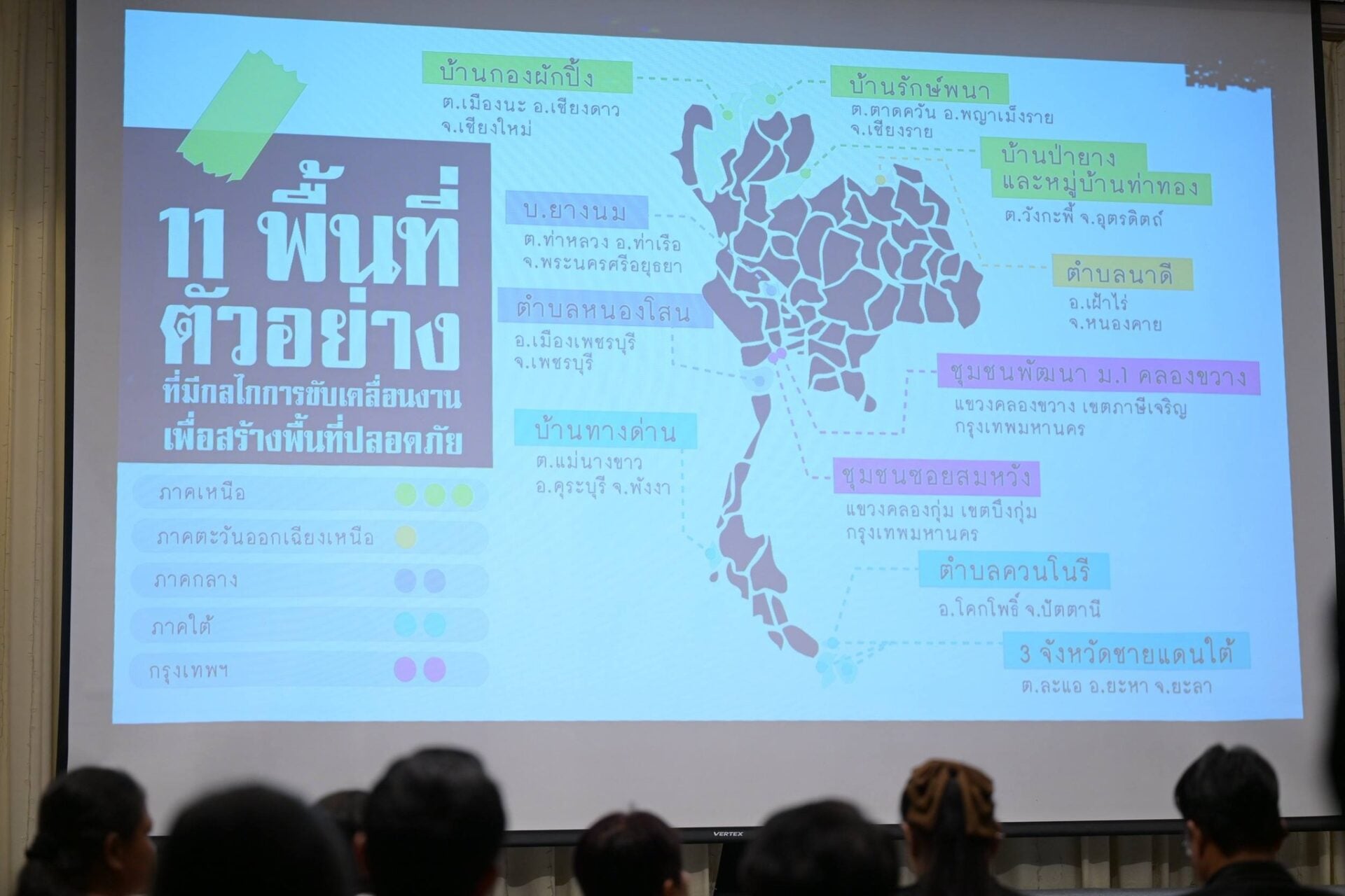 พื้นที่ต้นแบบ 11 แห่งจากเหนือจรดใต้สะท้อนพลังนี้อย่างเป็นรูปธรรม ได้แก่ บ้านกองผักปิ้ง จ.เชียงใหม่, บ้านยางนม จ.พระนครศรีอยุธยา, ต.หนองโสน จ.เพชรบุรี, บ้านทางด่าน จ.พังงา, บ้านรักษ์พม่า จ.เชียงราย, บ้านป่ายาง จ.อุตรดิตถ์, ต.นาคี จ.หนองคาย, ชุมชนพัฒนา คลองขวาง กทม., ชุมชนซอยสมหวัง บึงกุ่ม กทม., ต.ควนโนรี จ.ปัตตานี และพื้นที่ ต.ละแอ จ.ยะลา