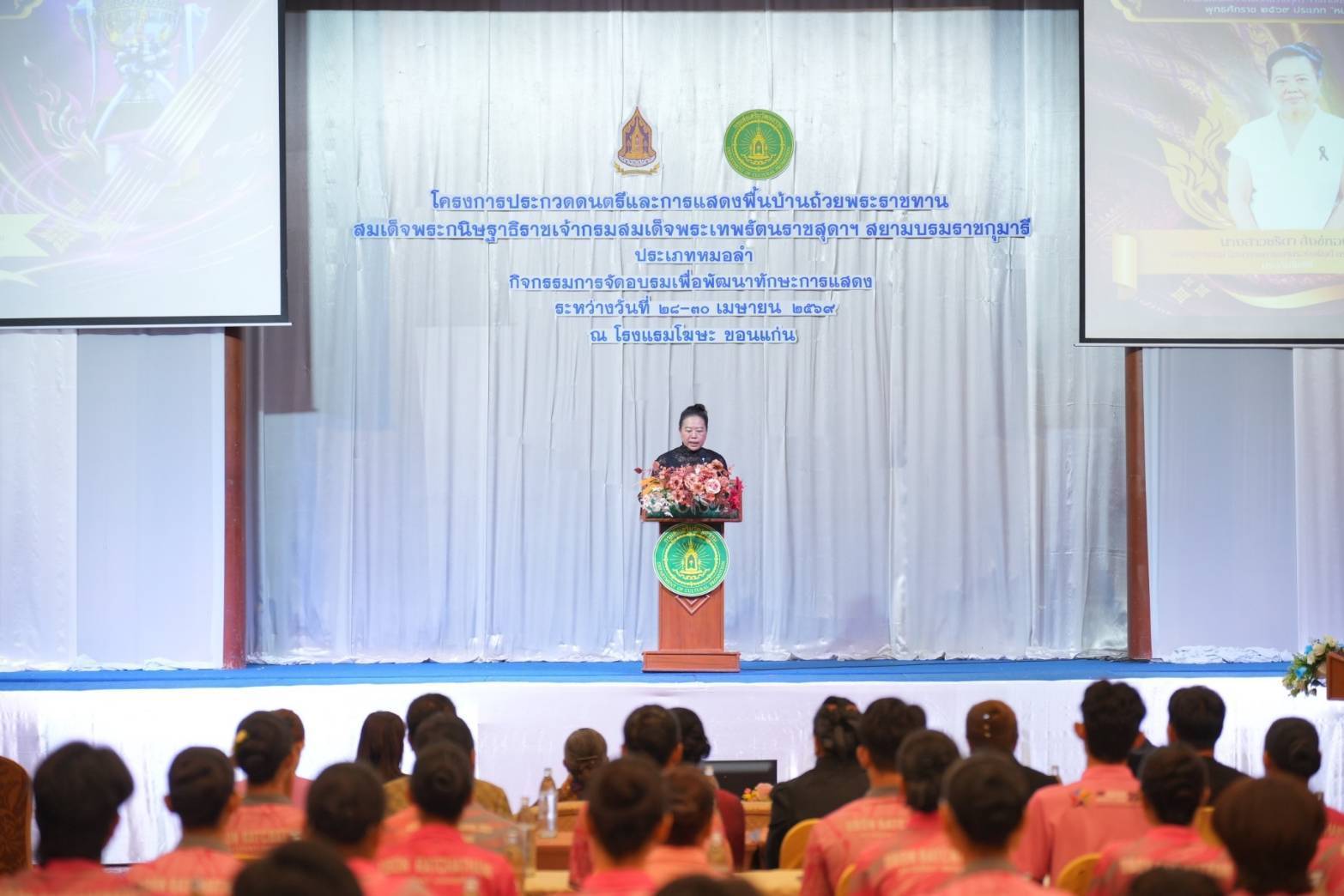 การอบรมเพื่อพัฒนาทักษะการแสดง เป็นกิจกรรมภายใต้โครงการประกวดดนตรีและการแสดงพื้นบ้าน ถ้วยพระราชทานสมเด็จพระกนิษฐาธิราชเจ้า กรมสมเด็จพระเทพรัตนราชสุดา ฯ สยามบรมราชกุมารี ประเภทหมอลำ ซึ่งผู้เข้าร่วมอบรมจะได้รับการถ่ายทอดความรู้จากคณะวิทยากรที่มีความรู้ ความเชี่ยวชาญ และประสบการณ์ด้านการแสดง มีผลงานเป็นที่ประจักษ์และได้รับการยอมรับในวงการศิลปะการแสดง อีกทั้งมีความสามารถในการถ่ายทอดองค์ความรู้และประสบการณ์ได้อย่างมีประสิทธิภาพ นอกจากนี้ ยังเป็นผู้มีทักษะในการสื่อสาร สามารถสร้างบรรยากาศการเรียนรู้ที่ดี ส่งเสริมให้ผู้เข้ารับการอบรมมีส่วนร่วมในการฝึกปฏิบัติ และสามารถนำความรู้ไปประยุกต์ใช้ได้อย่างเหมาะสม อันจะก่อให้เกิดประโยชน์สูงสุดแก่ผู้เข้ารับการอบรมประสบการณ์ด้านดนตรีและการแสดง โดยกิจกรรมการอบรมพัฒนาทักษะการสร้างสรรค์การแสดงหมอลำร่วมสมัย จัดขึ้นระหว่างวันที่ 28-30 เมษายน 2569.