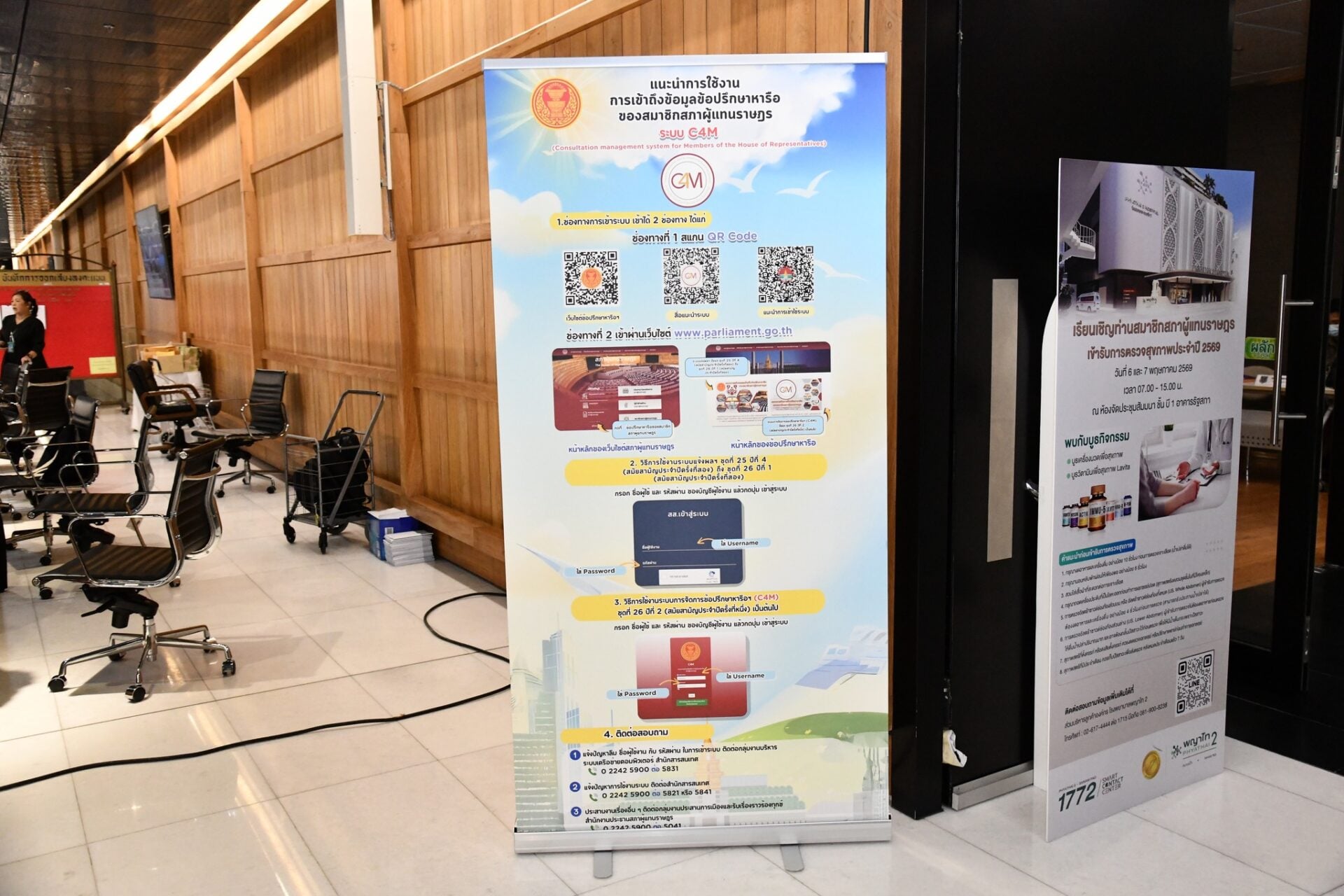 วันที่ 29 เม.ย.2569 ที่รัฐสภา นายโสภณ ซารัมย์ ประธานสภาผู้แทนราษฎร ตรวจเยี่ยมบูธรับเรื่องหารือของสมาชิกสภาผู้แทนราษฎร (สส.) ที่ตั้งอยู่บริเวณหน้าห้องประชุมชั้น2 ที่มีการเปิดใช้ระบบ “การปรึกษาหารือปัญหาความเดือดร้อนของประชาชนในรูปแบบลายลักษณ์อักษร” เป็นวันแรก เพื่อส่งต่อไปยังหน่วยงานที่เกี่ยวข้องได้โดยตรง โดยมีกระบวนการใกล้เคียงกับการหารือด้วยวาจา และจะมีการแสดงผลบนจอภายในห้องประชุม เพื่อให้เห็นจำนวนผู้ยื่นหารืออย่างชัดเจน สร้างความโปร่งใสและตรวจสอบได้