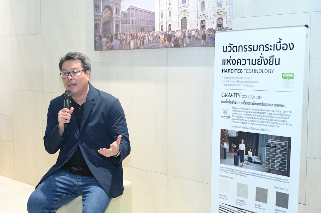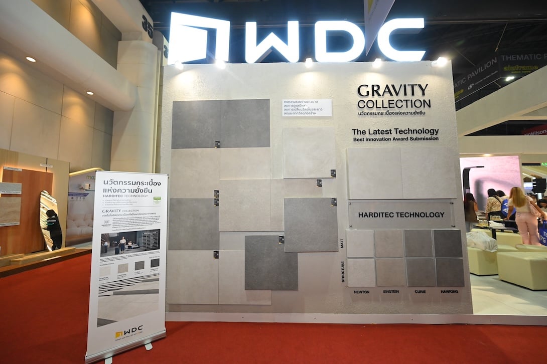 - Sustainability ผู้บริโภคเริ่มสนใจวัสดุที่เป็นมิตรต่อสิ่งแวดล้อม และแบรนด์ที่มีแนวคิดความยั่งยืนมากขึ้น WDC ปีนี้เรามีนวัตกรรมใหม่ Harditec Technology ที่ ช่วยให้กระเบื้องมีคุณสมบัติคงทนขึ้นในระดับรองจากเพชร ซึ่งจะช่วยให้ไม่ต้องเปลี่ยนวัสดุบ่อยๆ ลดค่าใช้จ่ายในการบำรุงรักษา และยังลดขยะจากการทุบทำลายอีกด้วย