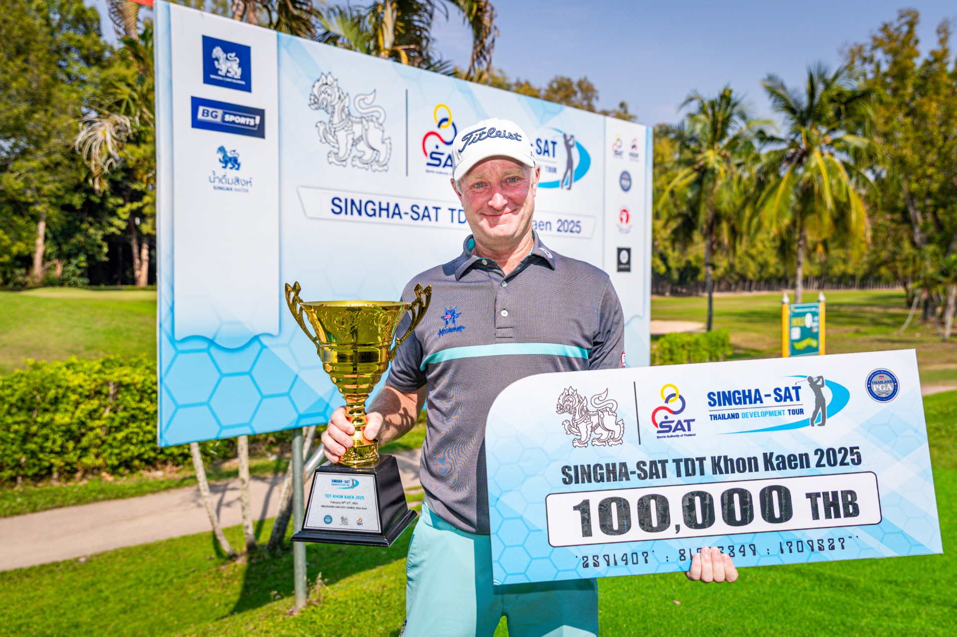 ปีเตอร์ วิลสัน นักกอล์ฟวัย 47 ปีจากออสเตรเลีย จบสกอร์รอบสุดท้ายอีก 5 อันเดอร์พาร์ 67 รวมสามวัน 7 อันเดอร์พาร์ 209 ทิ้งอันดับสอง 3 สโตรก คว้าแชมป์แมตช์เปิดฤดูกาลไทยแลนด์ ดีเวลลอปเมนต์ทัวร์ 2025 รายการ “สิงห์-เอสเอที ขอนแก่น 2025” ชิงเงินรางวัลรวม 1 ล้านบาท ณ สนามกอล์ฟเขื่อนอุบลรัตน์ ระยะ 6,691 หลา พาร์ 72 จ.ขอนแก่น เมื่อวันที่ 21 กุมภาพันธ์ 2568