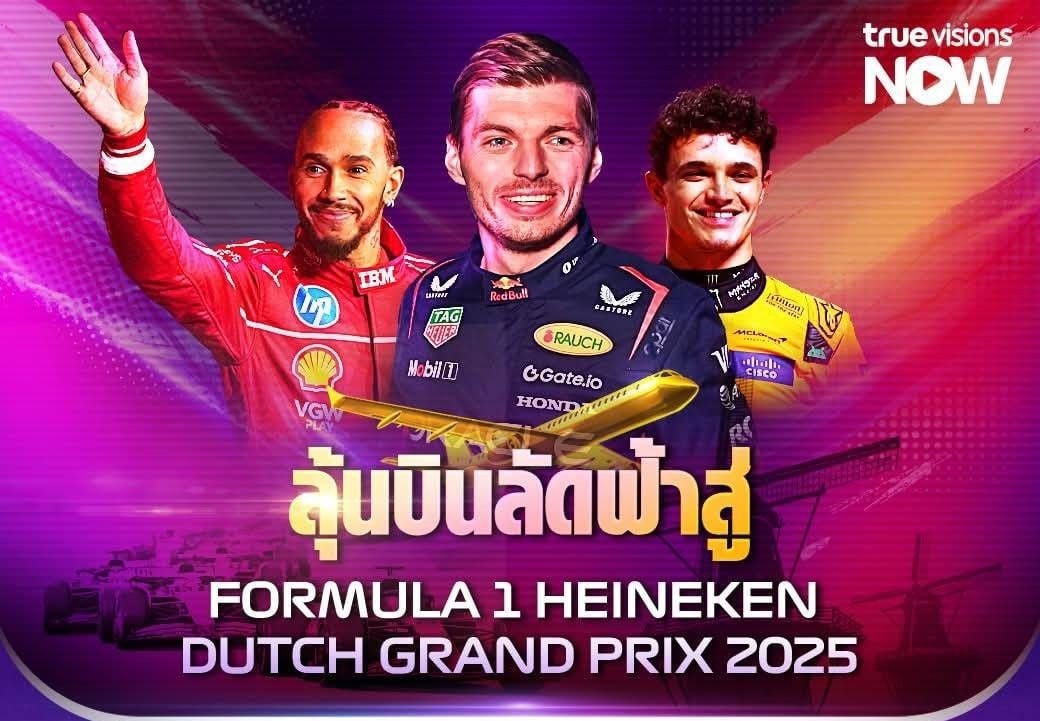 สมาชิกทรูวิชั่นส์ แพ็กเกจ Platinum และแอปพลิเคชันทรูวิชั่นส์ นาว (TrueVisions NOW) แพ็กเกจ Now Max ลุ้นเป็นผู้โชคดีสัมผัสประสบการณ์สุดพิเศษจาก beIN SPORTS Thailand บินลัดฟ้าสู่ประเทศ เนเธอร์แลนด์ ชมการแข่งขัน FORMULA 1 : HEINEKEN DUTCH GRAND PRIX 2025 จำนวน 1 รางวัล (รางวัลละ 2 ที่นั่ง) พร้อมที่พัก เริ่มแล้ววันนี้จนถึง 13 เมษายน 2568 สำหรับแอปพลิเคชันทรูวิชั่นส์ นาว (TrueVisions NOW) คลิกลุ้นรับสิทธิ์ได้เลย https://truevisions-now.onelink.me/RQwi/izbpq4tw