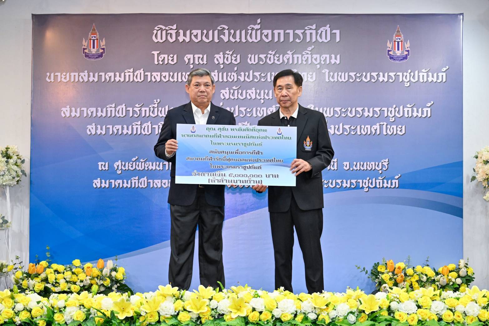 "บิ๊กสุชัย" นายสุชัย พรชัยศักดิ์อุดม นายกสมาคมกีฬาลอนเทนนิสแห่งประเทศไทย ในพระบรมราชูปถัมภ์ เป็นประธานในพิธีมอบเงินเพื่อการกีฬาสนับสนุน สมาคมกีฬารักบี้ฟุตบอลแห่งประเทศไทย ในพระบรมราชูปถัมภ์ และสมาคมกีฬาฟิกเกอร์และสปีดสเก็ตติ้งแห่งประเทศไทย โดยมี พ.ต.ท.กุลธน ประจวบเหมาะ นายกสมาคมกีฬารักบี้ฟุตบอลฯ และ ดร.สีหศักดิ์ อารีราชการัณย์ นายกสมาคมกีฬาฟิกเกอร์และสปีดสเก็ตติ้งฯ ร่วมรับมอบเงินสนับสนุน ซึ่งเป็นเงินส่วนตัวของ นายสุชัย ที่มอบให้สมาคมละ 5 ล้านบาท รวม 2 สมาคม เป็นจำนวนเงิน 10 ล้านบาท ที่ศูนย์พัฒนากีฬาเทนนิสแห่งชาติ สมาคมกีฬาลอนเทนนิสแห่งประเทศไทยฯ เมืองทองธานี จ.นนทบุรี เมื่อวันที่ 25 เมษายน 2568