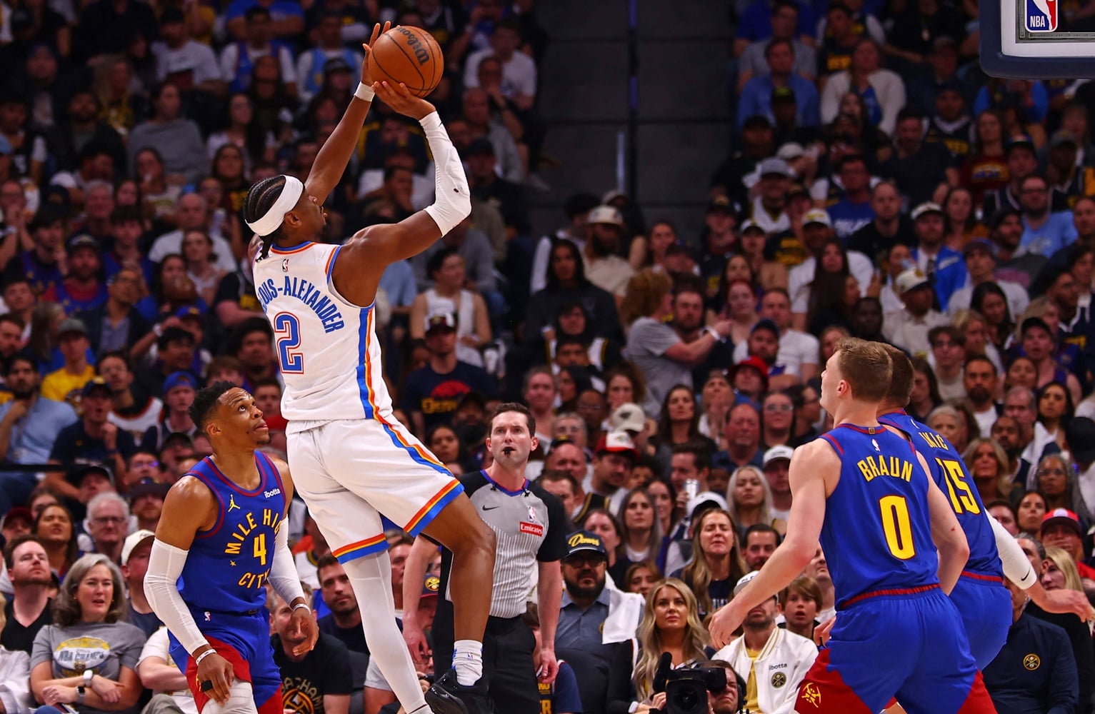 โอคลาโฮมา ซิตี ธันเดอร์ บุกไปเอาชนะ เดนเวอร์ นักเก็ตส์ แบบหวุดหวิด 92-87 คะแนน ปล้นเกมเยือนคืนกลับมาได้สำเร็จ ในศึกบาสเกตบอล เอ็นบีเอ รอบรองชนะเลิศ สายตะวันตก เกม 4 ที่สนามบอลล์ อารีนา เช้าวันจันทร์ที่ 12 พฤษภาคม ตามเวลาไทย