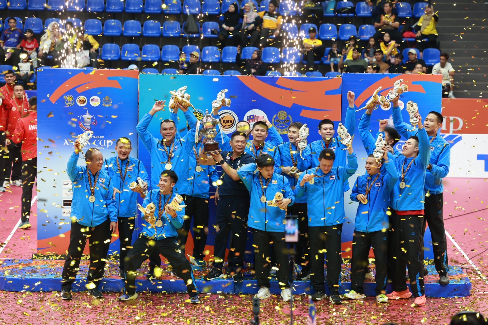 การแข่งขันเซปักตะกร้อเอเชียนคัพ 2025 ที่สนาม ติติวังสา อินดอร์ สเตเดี้ยม กรุงกัวลาลัมเปอร์ ประเทศมาเลเซีย ประเภททีมชุด รอบชิงชนะเลิศ ทัพตะกร้อชายทีมชาติไทย พบกับ คู่ปรับตลอดกาลอย่าง มาเลเซีย