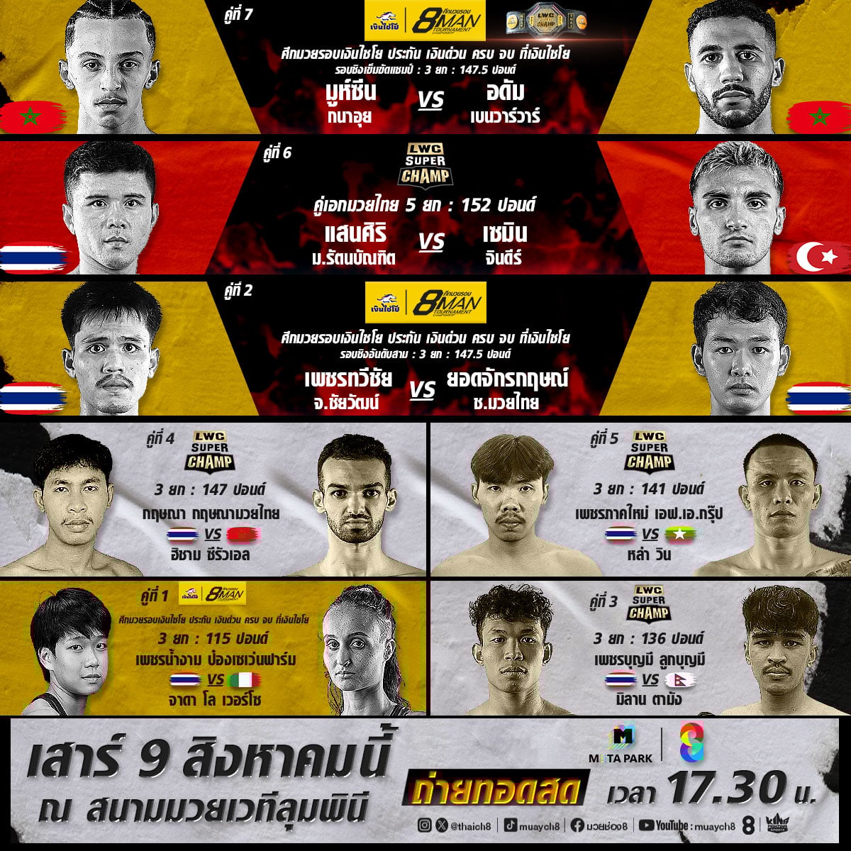 ดังนั้นห้ามพลาดชม 2 รายการมวยไทยสุดสัปดาห์ การันตีความมันที่สุดของประเทศ ใน วันเสาร์ที่ 9 สิงหาคม กับรายการ LWC SUPER CHAMP (ลุมพินีเวิลด์ แชมเปี้ยนชิพ ซุปเปอร์แชมป์) เวลา 17.30 น. และ วันอาทิตย์ที่ 10 สิงหาคม รายการ มวยดีวิถีไทย เวลา 12.30 น. ทางช่อง 8 กดเลข 27 ที่มีรายการมวยไทยมากที่สุด!