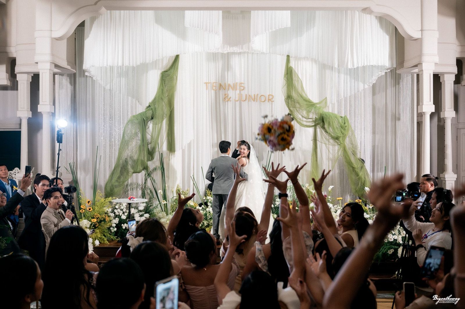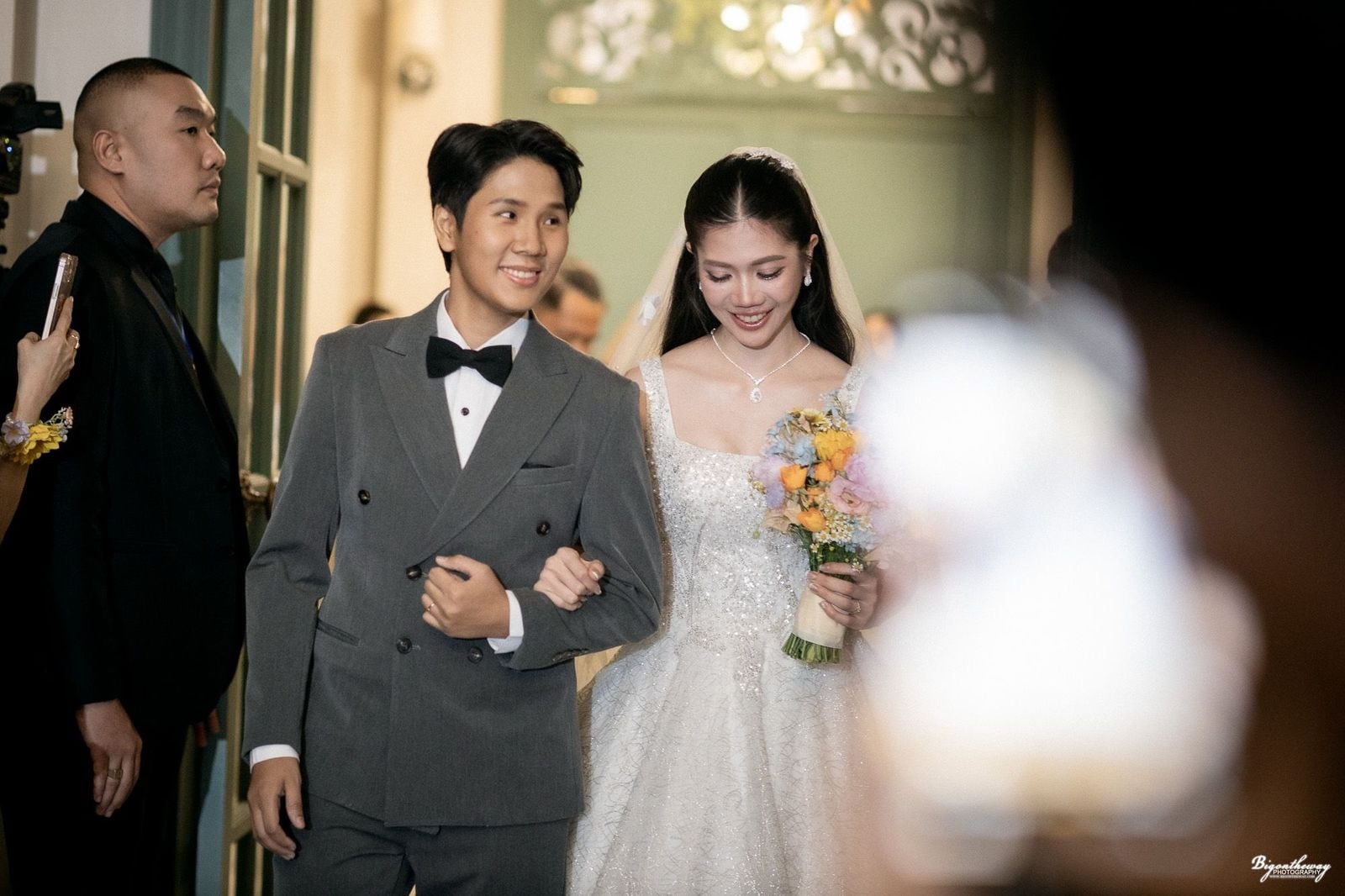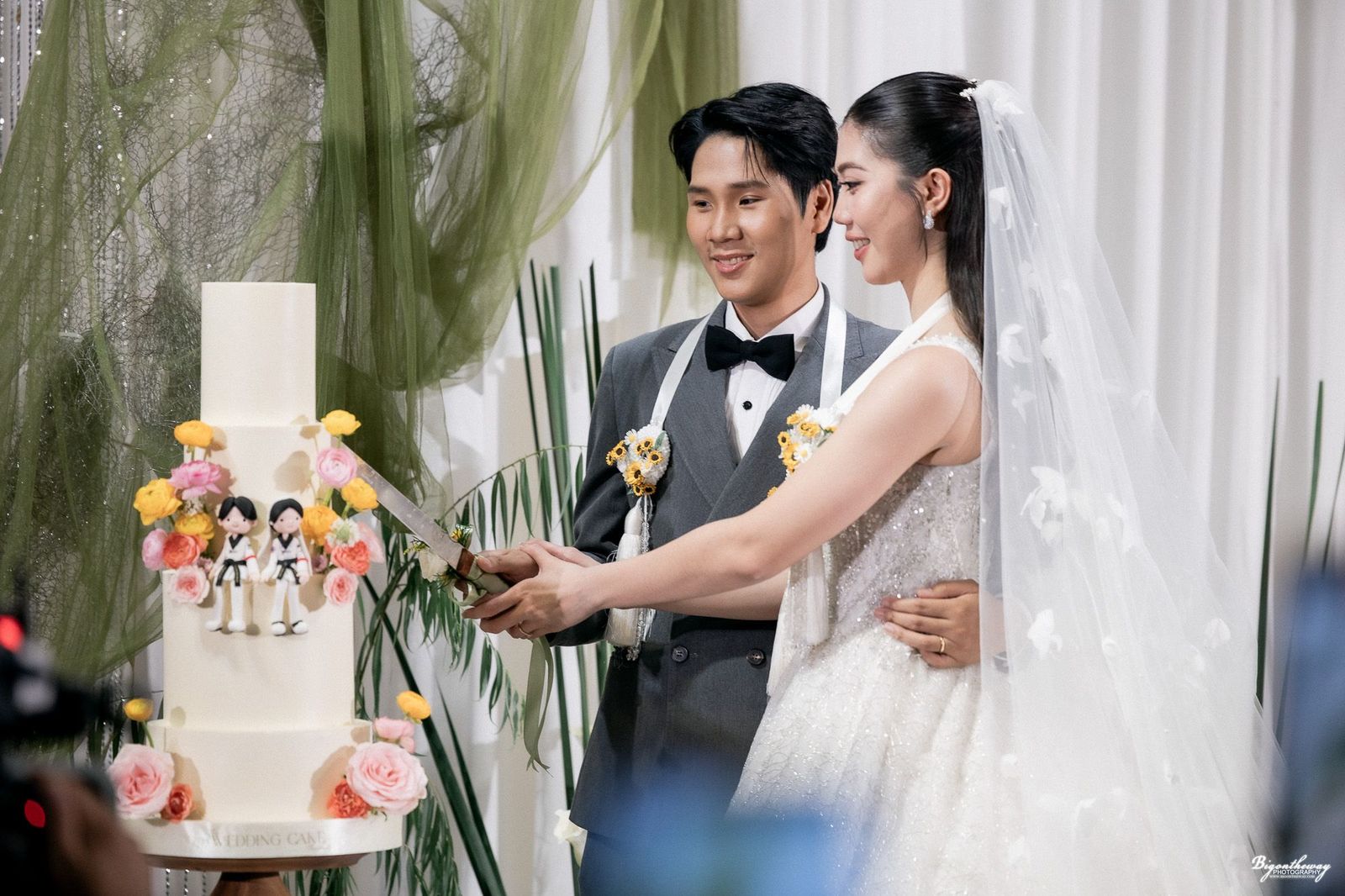 เก็บตกภาพบรรยากาศพิธีวิวาห์ของ “เทนนิส” เรืออากาศโทหญิง พาณิภัค วงศ์พัฒนกิจ อดีตนักกีฬาเทควันโดทีมชาติไทย เจ้าของ เหรียญทองโอลิมปิกเกมส์ 2 สมัย ที่จูงมือแฟนหนุ่ม “จูเนียร์” รามณรงค์ เสวกวิหารี อดีตนักเทควันโดทีมชาติ ที่เป็นไปอย่างชื่นมื่น