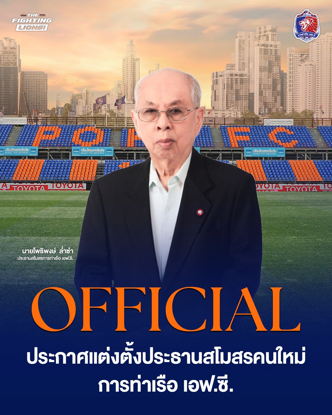 สโมสรฯ ขอเรียนแจ้ง ให้ทราบว่า ได้เชิญนายโพธิพงษ์ ล่ำซำ บิดาของ “มาดามแป้ง“ นวลพรรณ ล่ำซำ อดีตประธานสโมสร ซึ่งท่านเป็นอดีตรัฐมนตรีช่วยว่าการกระทรวงพาณิชย์ และอดีตกรรมการบอร์ดบริหารของการท่าเรือแห่งประเทศไทย มารับตำแหน่งประธานสโมสรการท่าเรือ เอฟ.ซี.