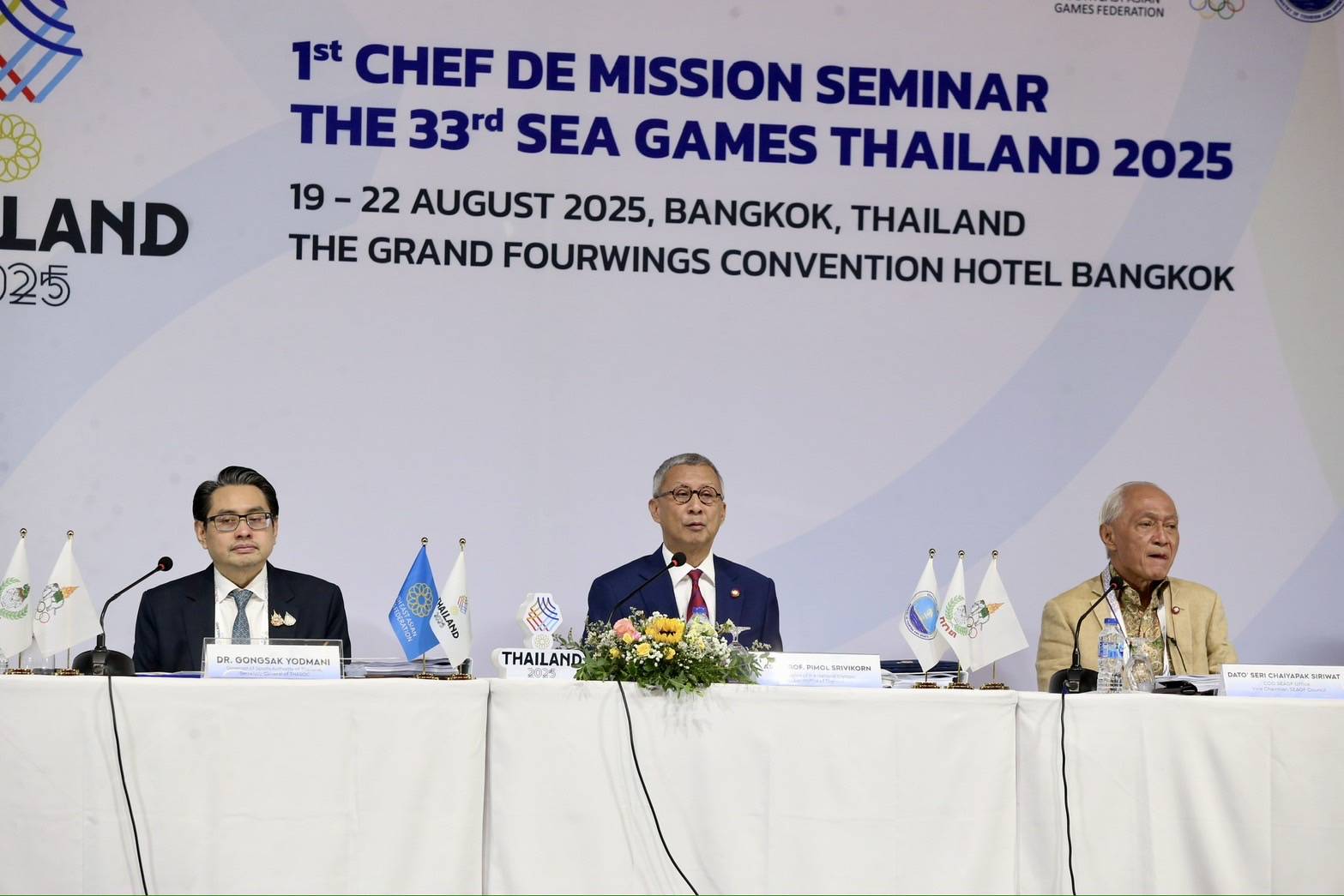 ผศ.พิมล ศรีวิกรม์ ประธานคณะกรรมการโอลิมปิคแห่งประเทศไทย ในฐานะประธานสหพันธ์กีฬาซีเกมส์ เป็นประธานในการประชุมหัวหน้านักกีฬาซีเกมส์ ครั้งที่ 33 ที่โรงแรม เดอะ แกรนด์ โฟร์วิงส์ เมื่อวันที่ 20 สิงหาคม โดยมีนายชัยภักดิ์ ศิริวัฒน์ ซีอีโอสหพันธ์กีฬาซีเกมส์, นายธนา ไชยประสิทธิ์ หัวหน้านักกีฬาไทย และหัวหน้านักกีฬาจากชาติอาเซียน ร่วมประชุม