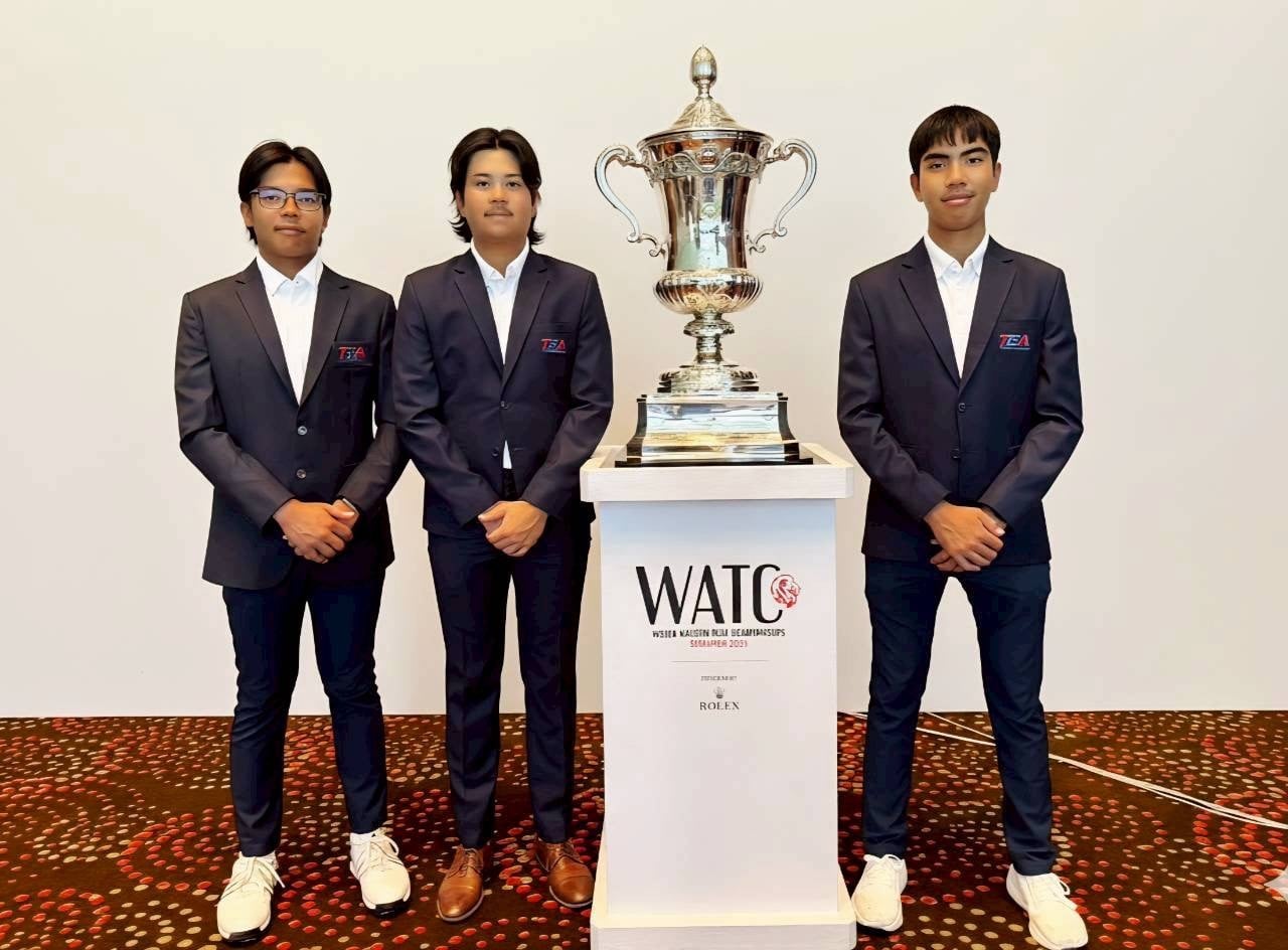 สมาคมกีฬากอล์ฟแห่งประเทศไทยฯ ส่งทีมนักกอล์ฟชายไทย ร่วมแข่งขันกอล์ฟสมัครเล่นชิงแชมป์โลก ครั้งที่ 34 ที่สนามทานาห์ เมราห์ คันทรี คลับ ประเทศสิงคโปร์ ระหว่างวันที่ 8-11 ตุลาคม 2568 โดยนักกอล์ฟทีมไทย ประกอบด้วย ประกอบด้วย “ฟีฟ่า” พงศภัค เหล่าภักดี, “ไป๋” อาศิษย์ อารีพันธ์ และ ”แอนฟิลด์” ปรินทร์ สารสมุทร โดยมีโปรเบ็นซ์ เพศประเสริฐ ทำหน้าที่ผู้ควบคุมทีม โดยมี 36 ทีมทั่วโลกเข้าร่วมแข่งขัน