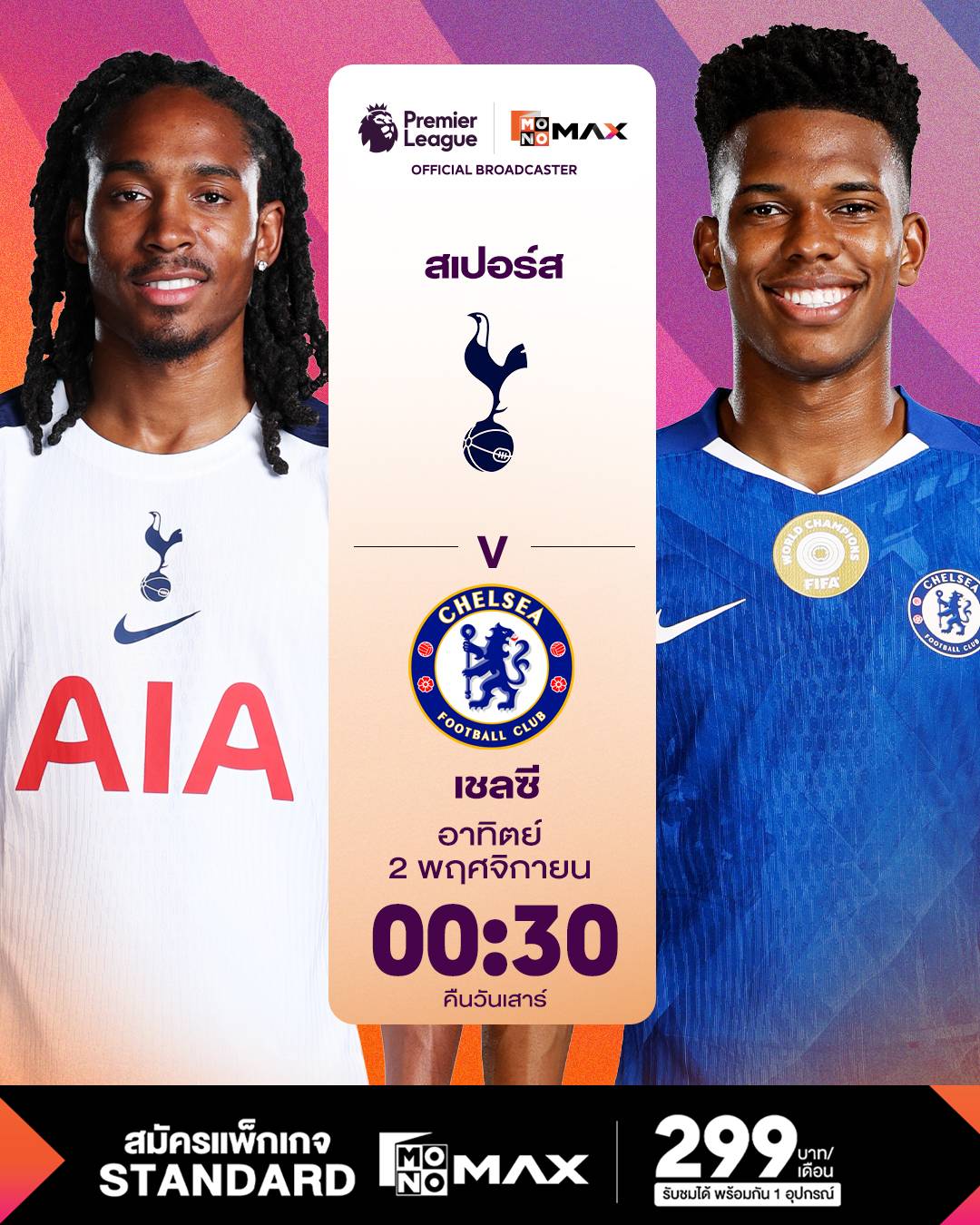 ลอนดอนดาร์บี้'สิงห์บลู'ปะทะ'ปืนใหญ่ บิ๊กแมตซ์พรีเมียร์ลีก 'Monomax'สดครบทุกคู่
