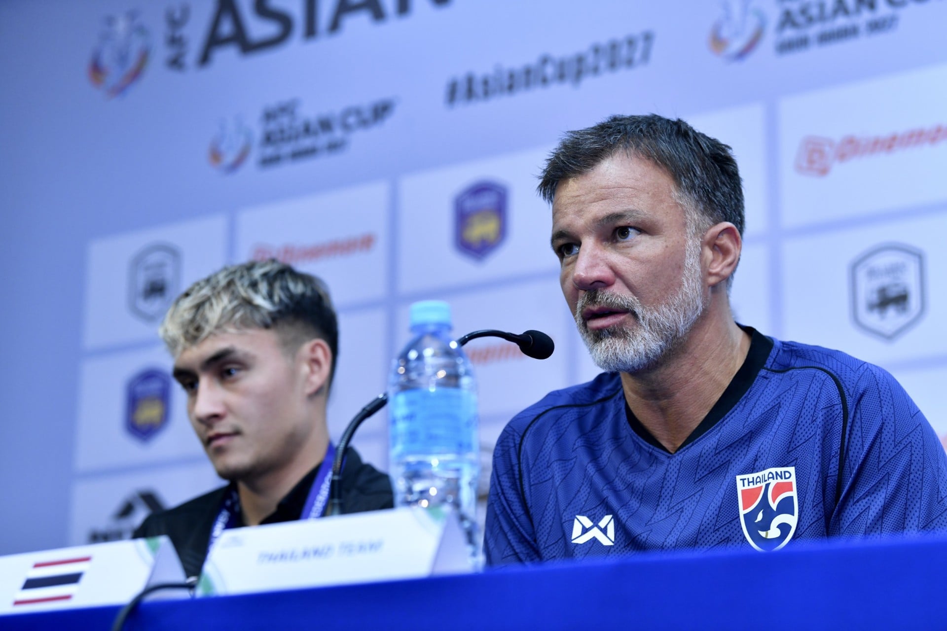 การแถลงข่าวครั้งนี้นำโดย “แอนโธนี ฮัดสัน” หัวหน้าผู้ฝึกสอนทีมชาติไทย พร้อมด้วย “นิโคลัส มิคเกลสัน"