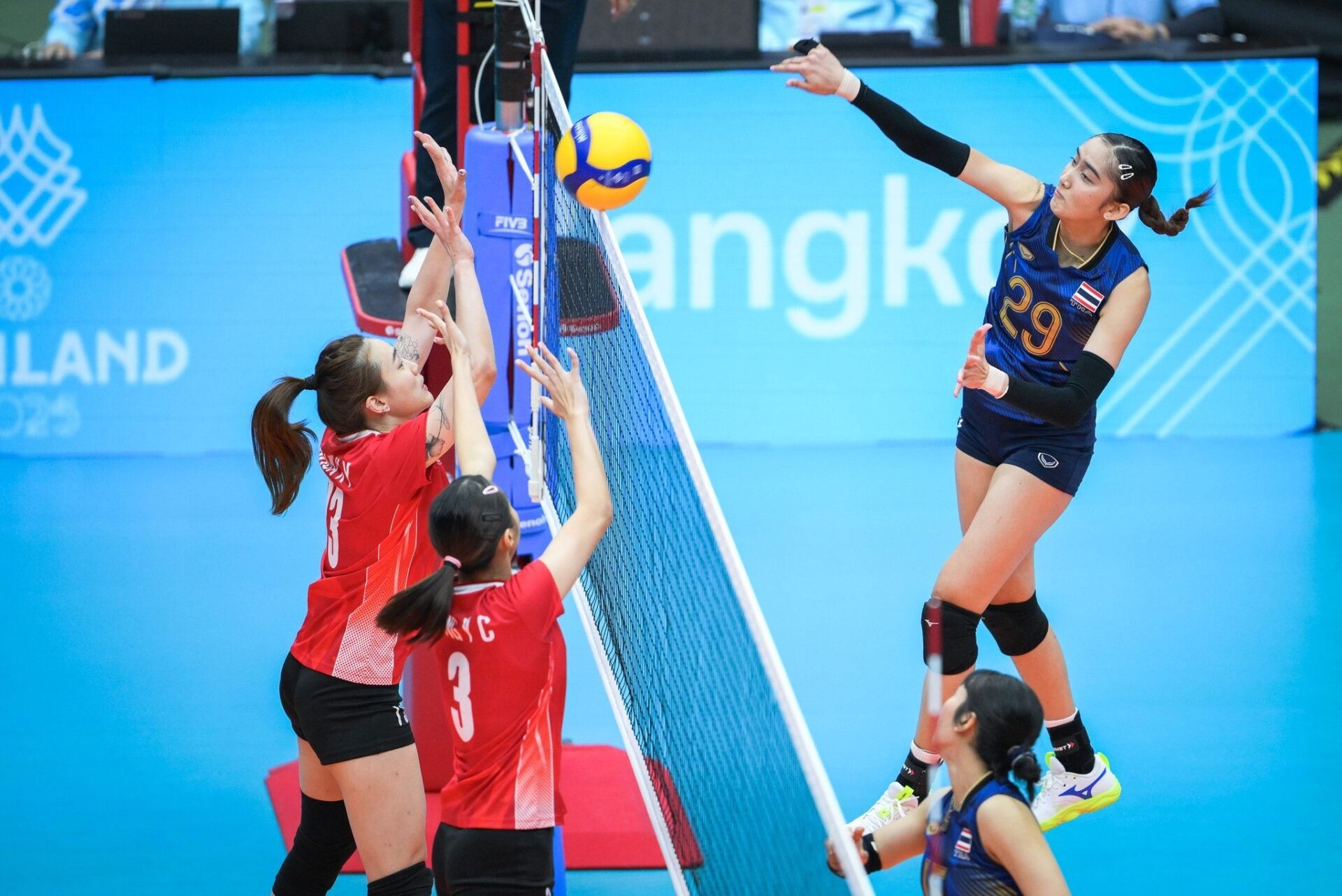 การแข่งขันวอลเลย์บอลหญิง ในกีฬาซีเกมส์ ครั้งที่ 33 ณ อินดอร์ สเตเดียม หัวหมาก เมื่อวันที่ 10 ธันวาคมที่ผ่านมา เป็นการประเดิมสนามวันแรก ทีมตบลูกยางสาวไทย ดีกรีแชมป์เก่า 17 สมัย พบกับ สิงคโปร์