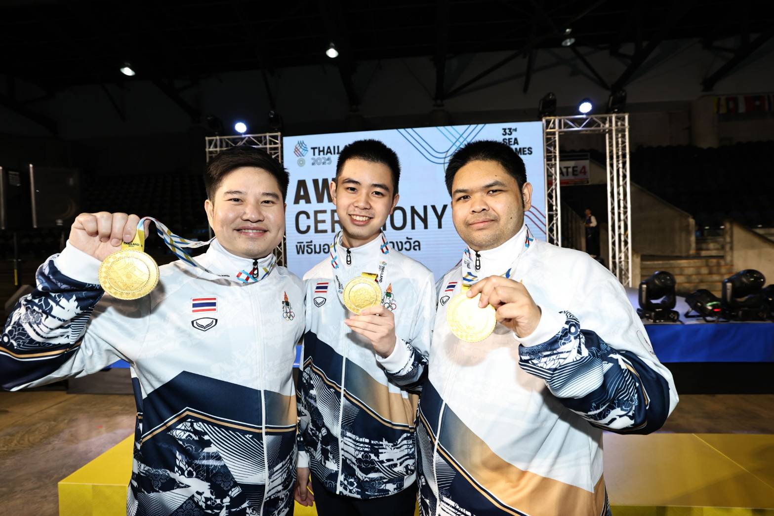 นักสอยคิวไทยเอาชนะลาว 3-1 คู่ ในรอบชิงชนะเลิศ คว้าแชมป์สนุกเกอร์ 15 แดง ประเภททีมชาย กีฬาซีเกมส์ ครั้งที่ 33 ที่ธันเดอร์โดม เมืองทองธานี เมื่อวันที่ 13 ธันวาคม