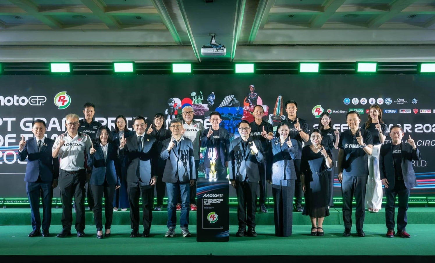 ภายในงานแถลงข่าว ยังมีการเปิดตัว ถ้วยรางวัลโมโตจีพี สนามประเทศไทย ประจำปี 2026 อย่างเป็นทางการ ซึ่งนับเป็นอีกหนึ่งไฮไลต์สำคัญของฤดูกาล งานออกแบบถ่ายทอดเรื่องราวและอัตลักษณ์ของประเทศไทยในฐานะ “สนามเปิดฤดูกาล” ของศึกสองล้อระดับโลก โดยแนวคิดหลักเปรียบเสมือน การจุดคบเพลิงแห่งการเริ่มต้น จากสนามแรกคือประเทศไทยไปสู่ทั้งฤดูกาล MotoGP 2026