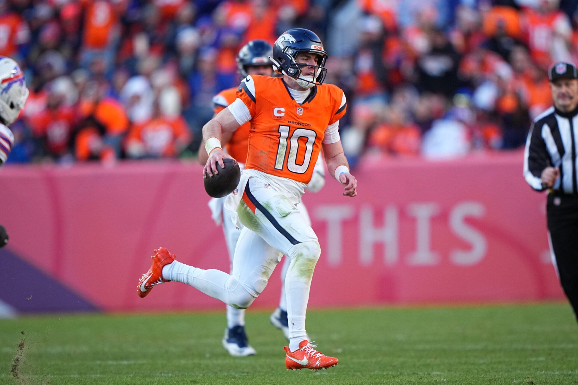 จาควอน แม็คมิลแลน อินเทอร์เซ็ปต์บอลขว้างแนวลึกของ จอช อัลเลน ช่วงต่อเวลา และ โบ นิกซ์ ควอเตอร์แบ็ก ขับเคลื่อนทีมบุก บรองโกส์ ตั้งให้ วิล ลัตซ์ เตะฟิลด์โกลระยะ 23 หลาตัดสินเกม
