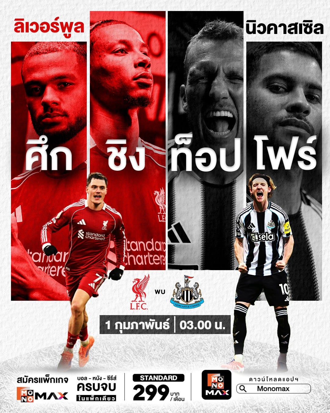 ปิดท้ายสัปดาห์ในคืน วันอังคารที่ 3 กุมภาพันธ์ 2569 เวลา 03.00 น. (คืนวันจันทร์ที่ 2 กุมภาพันธ์ 2569) Monomax ยิงสด ซันเดอร์แลนด์ พบ เบิร์นลีย์ สองทีมจากโซนล่างที่ต้องการชัยชนะเพื่อเพิ่มโอกาสอยู่รอดในพรีเมียร์ลีก ซึ่งผลการแข่งขันนัดนี้อาจส่งผลต่อสถานการณ์ระยะยาวของทั้งสองทีม