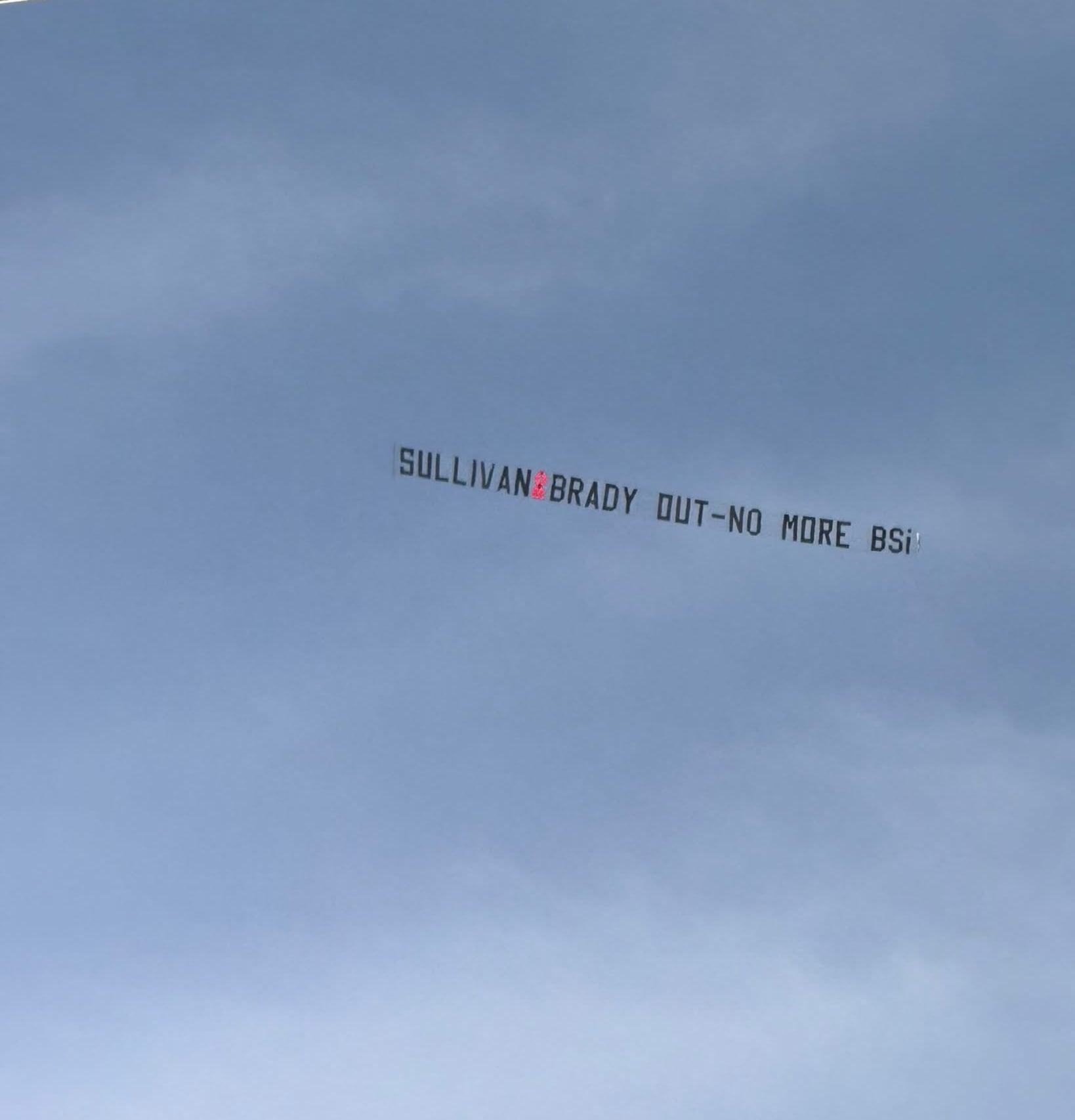 ก่อนเริ่มเกมดังกล่าวก็มีเครื่องบินบินผ่านสนาม ปิเรลลี สเตเดี้ยม รังเหย้าของ เบอร์ตัน อัลเบียน คู่แข่งที่เป็นทีมต่ำชั้นกว่า พร้อมข้อความว่า “ซุลลิแวน และเบรดี (เจ้าของร่วม) ออกไป เลิกตอแหลได้แล้ว”