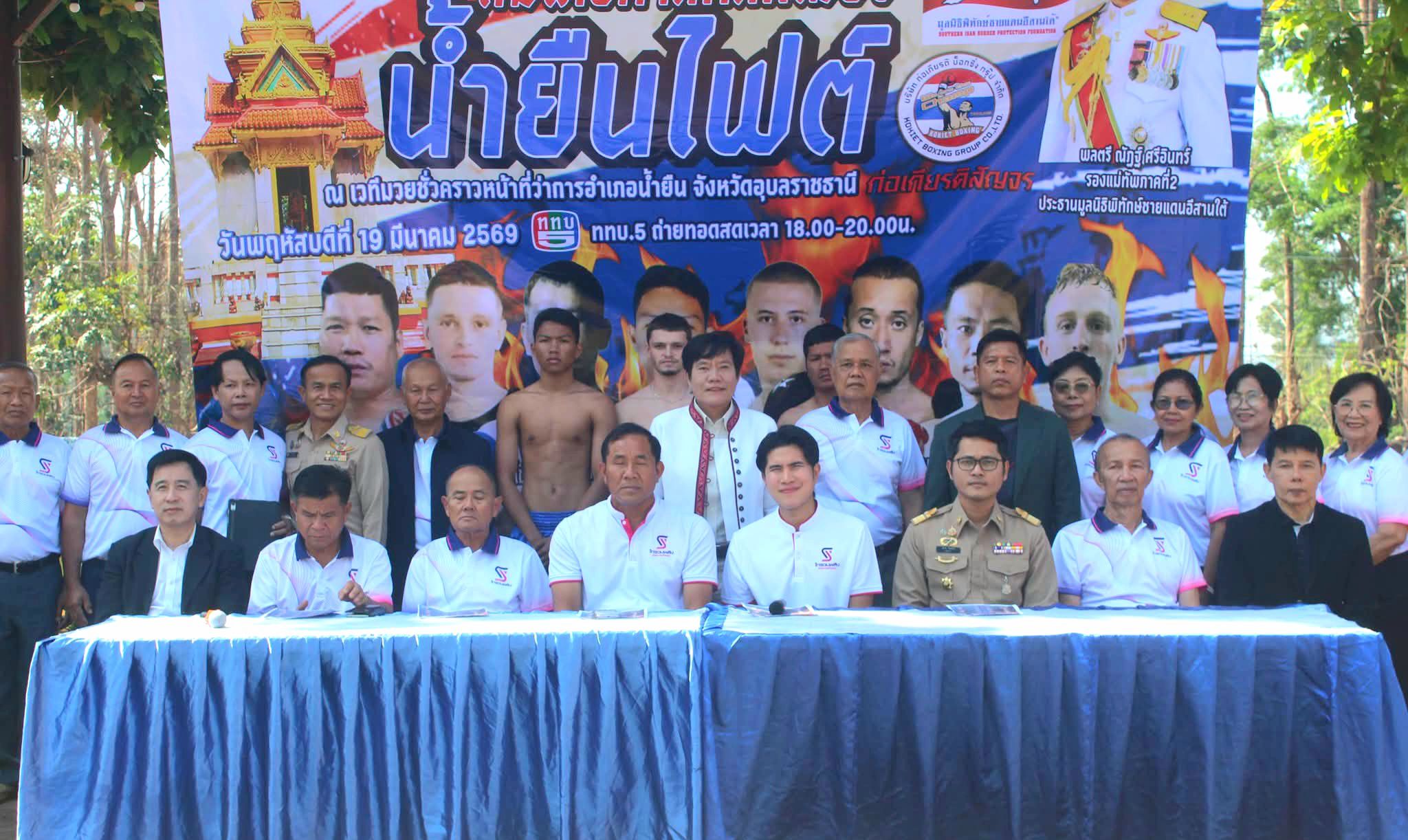 "เพื่อร่วมสืบสานวัฒนธรรมประเพณีอันดีงามของชาวอำเภอน้ำยืนและร่วมสักการะบูชาศาลหลักเมือง อ.น้ำยืน สิ่งศักดิ์สิทธ์คู่บ้านคู่เมือง โดยอำเภอน้ำยืนจัดงานสมโภชน์ในระหว่างวันที่ 13 - 20 มี.ค.69 และในวันพฤหัสบดีที่ 19 มี.ค.69 จัดมหกรรมมวยไทยนานาชาติ"ก่อเกียรติสัญจร" ถ่ายทอดสดจากเวทีมวยชั่วคราวลานหน้าเทศบาลอ.น้ำยืน จ.อุบลราชธานี สู่สายตาประชาชนทั่วประเทศทางสถานีวิทยุโทรทัศน์กองทัพบก ช่อง 5 ตั้งแต่เวลา 18.00 น. - 20.00 น.ซึ่งตนเชื่อว่ามหกรรมมวยไทยนานาชาติ"ก่อเกียรติสัญจร" ในครั้งนี้จะช่วยผ่อนคลายสถานการณ์ตึงเครียดบริเวณชายแดนไทย-กัมพูชา และสร้างความสุขให้กับชาวอำเภอน้ำยืน และพื้นที่ใกล้เคียงกับคู่มวยสุดเดือดในรายการกว่า 20 คู่ พร้อมเชิญชวนชาวอำเภอน้ำยืนและนักท่องเที่ยวมาร่วมชมร่วมเชียร์มหกรรมมวยไทยนานาชาติในวันพฤหัสบดีที่ 19 มี.ค.2569