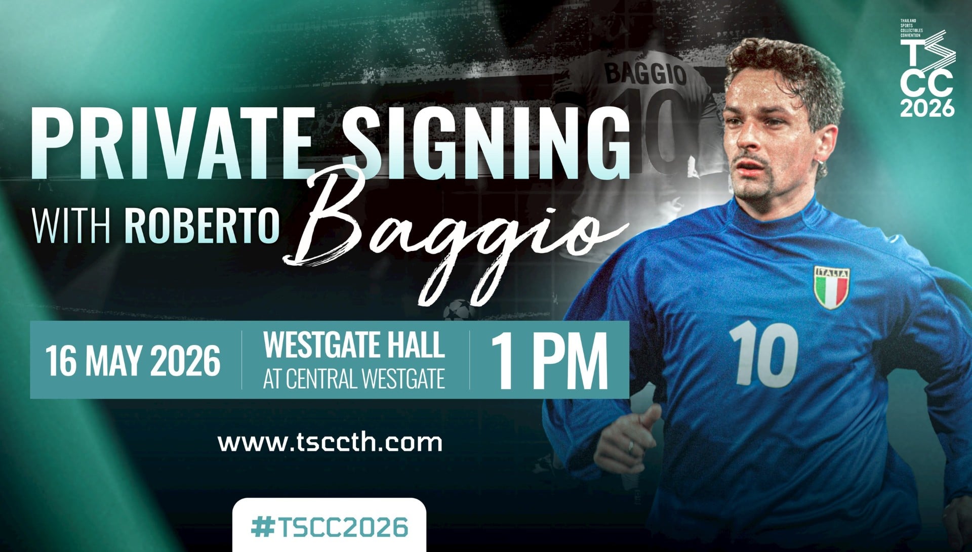 กรุงเทพฯ0...ประกาศแล้ว! ไฮไลท์สุดพิเศษของงาน Thailand Sports Collectibles Convention 2026 (TSCC'26) ที่จะจัดขึ้น 2 วันเต็ม ในวันที่ 16-17 พฤษภาคม 2569 กับโอกาสหาได้ยากที่จะพบตำนานฟุตบอลระดับโลก "เทพบุตรเปียทองคำ" โรแบร์โต้ บาจโจ้ ผู้คว้ารางวัล Ballon d'Or ปี 1993 ในการมาเยือนเมืองไทยอย่างเป็นทางการครั้งแรกในรอบ 30 ปี พร้อมกิจกรรม Meet and Greet สุดพิเศษที่จะมีแฟนบอลเพียง 250 คนเท่านั้นที่จะได้ถ่ายภาพ 1:1 และรับลายเซ็นบนผลงานศิลปะสุดเอกซ์คลูซีฟ ภายในงานนี้เท่านั้น